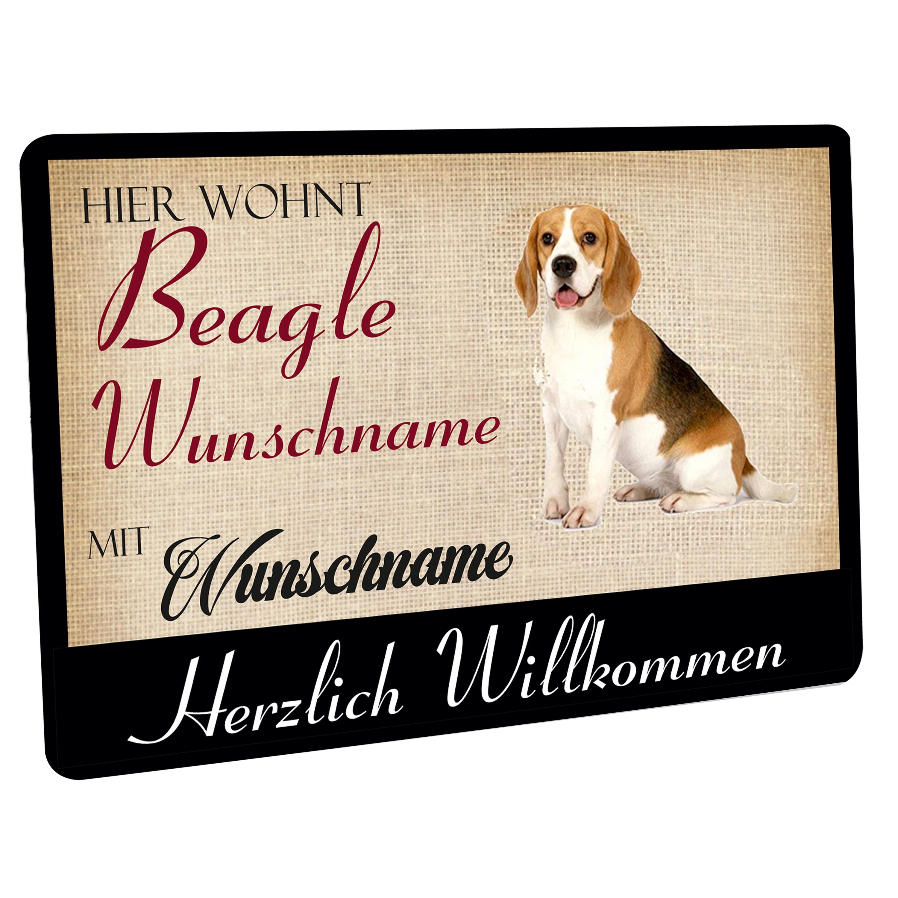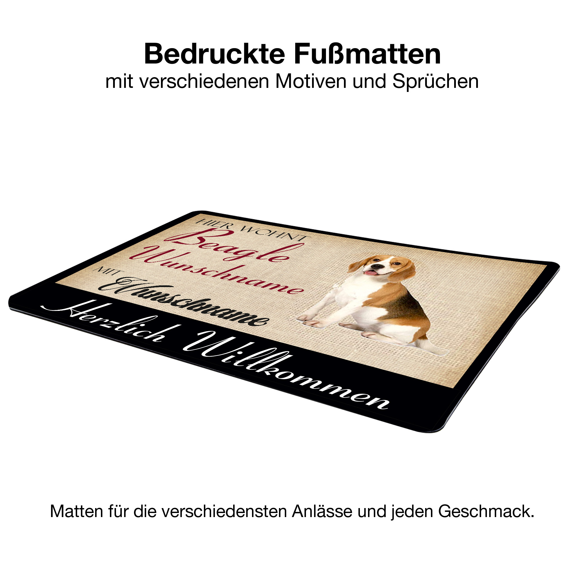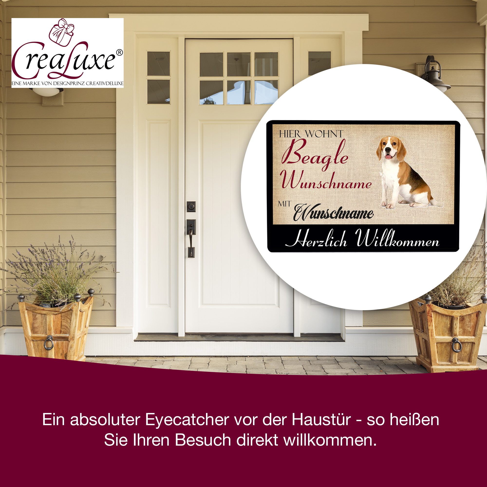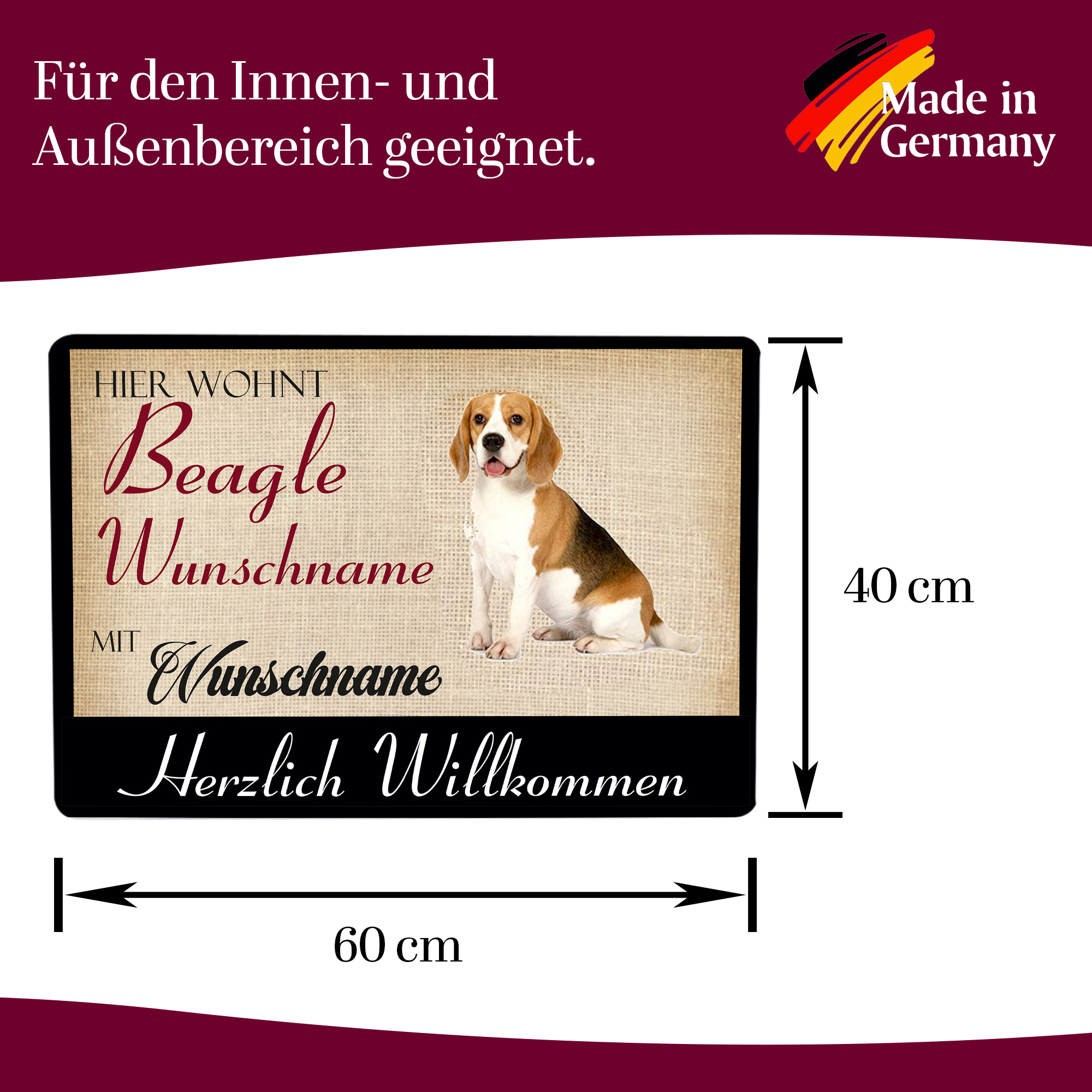 Crealuxe Fussmatte - Hier wohnt BEAGLE Hundename mit Wunschname - personalisiert, Hundematte, Fußabtreter, Fußabstreifer für die Haustür, Fußmatte rutschfest