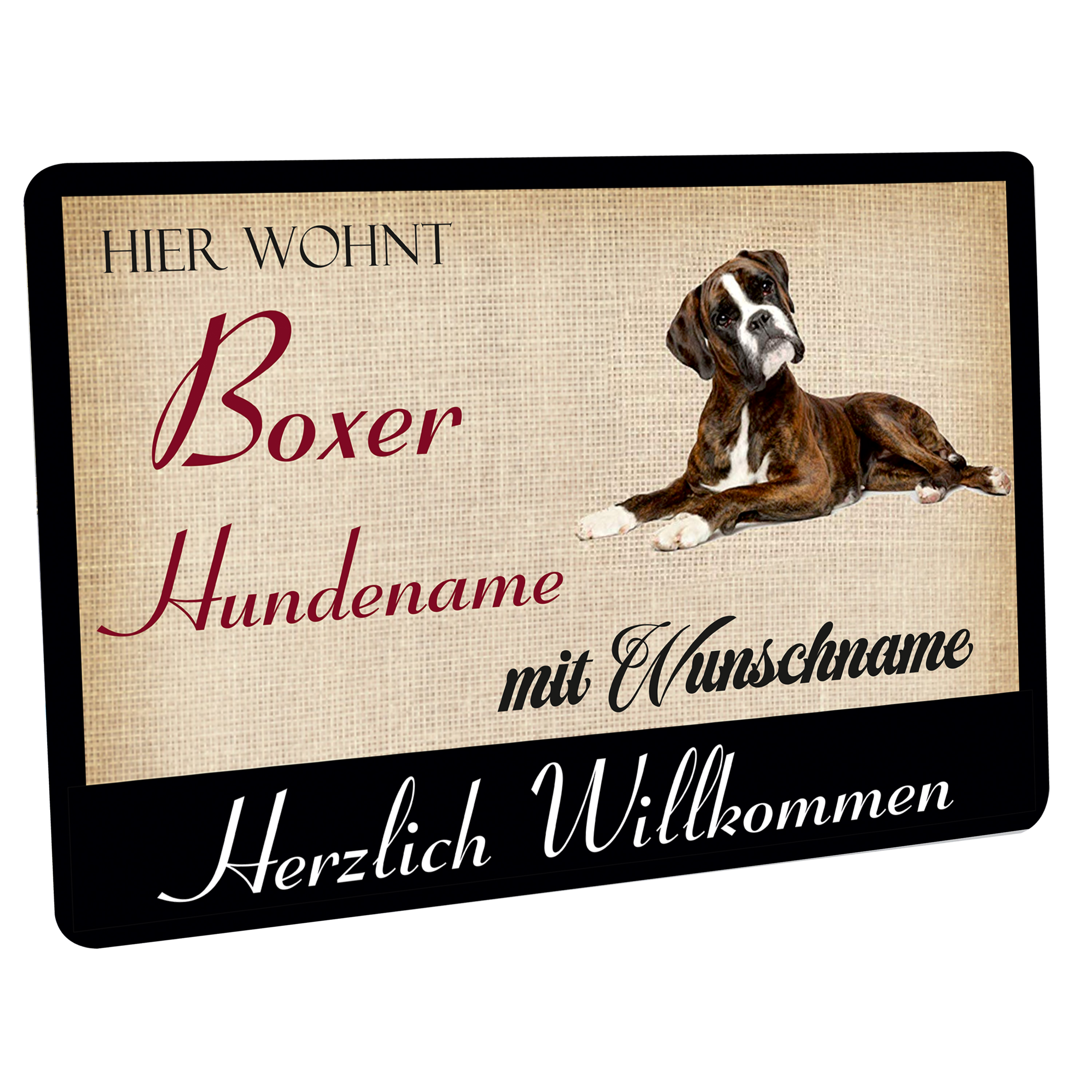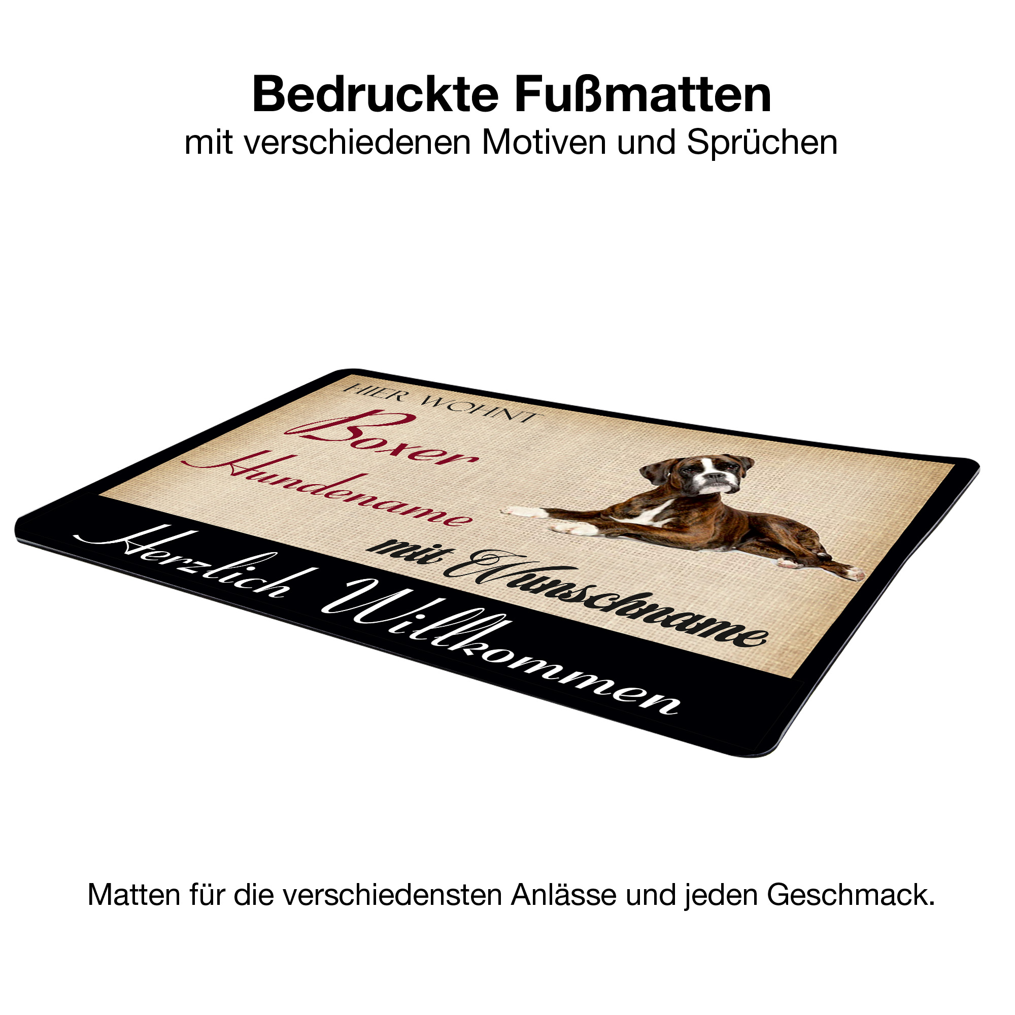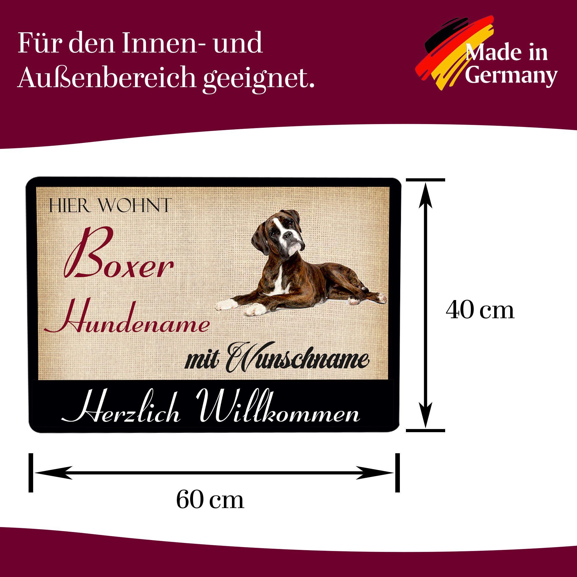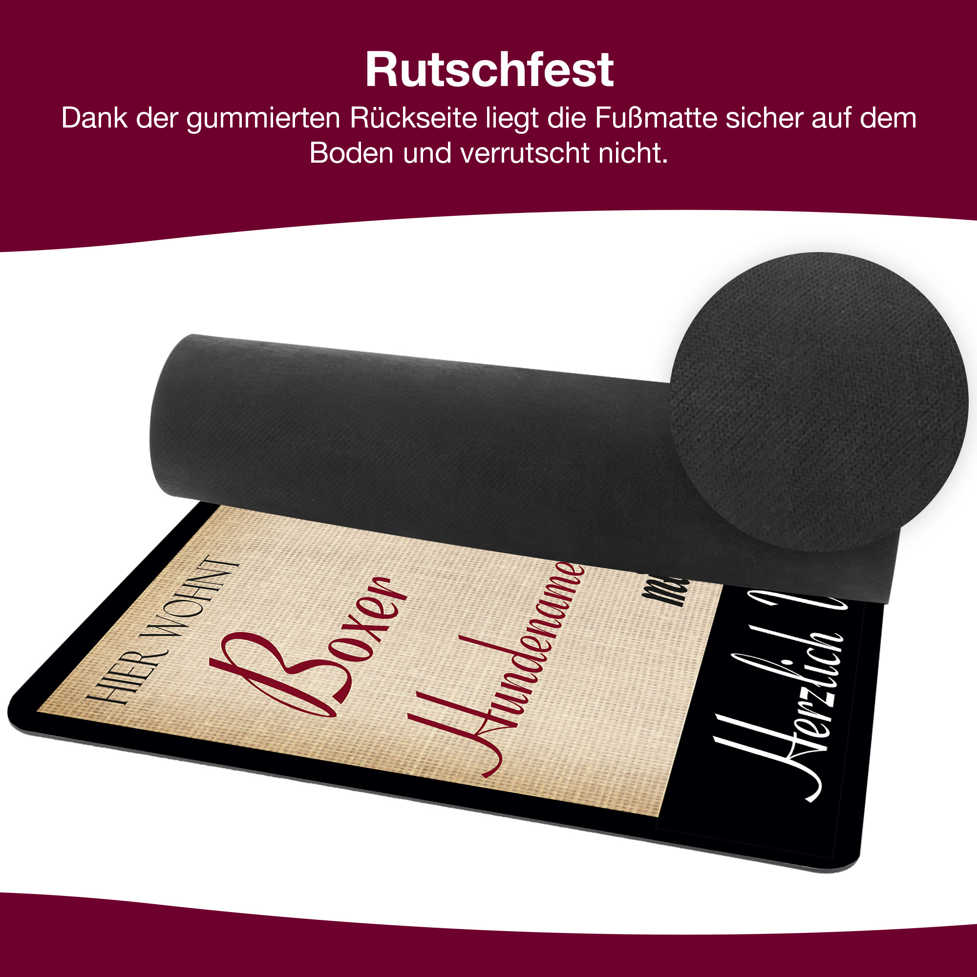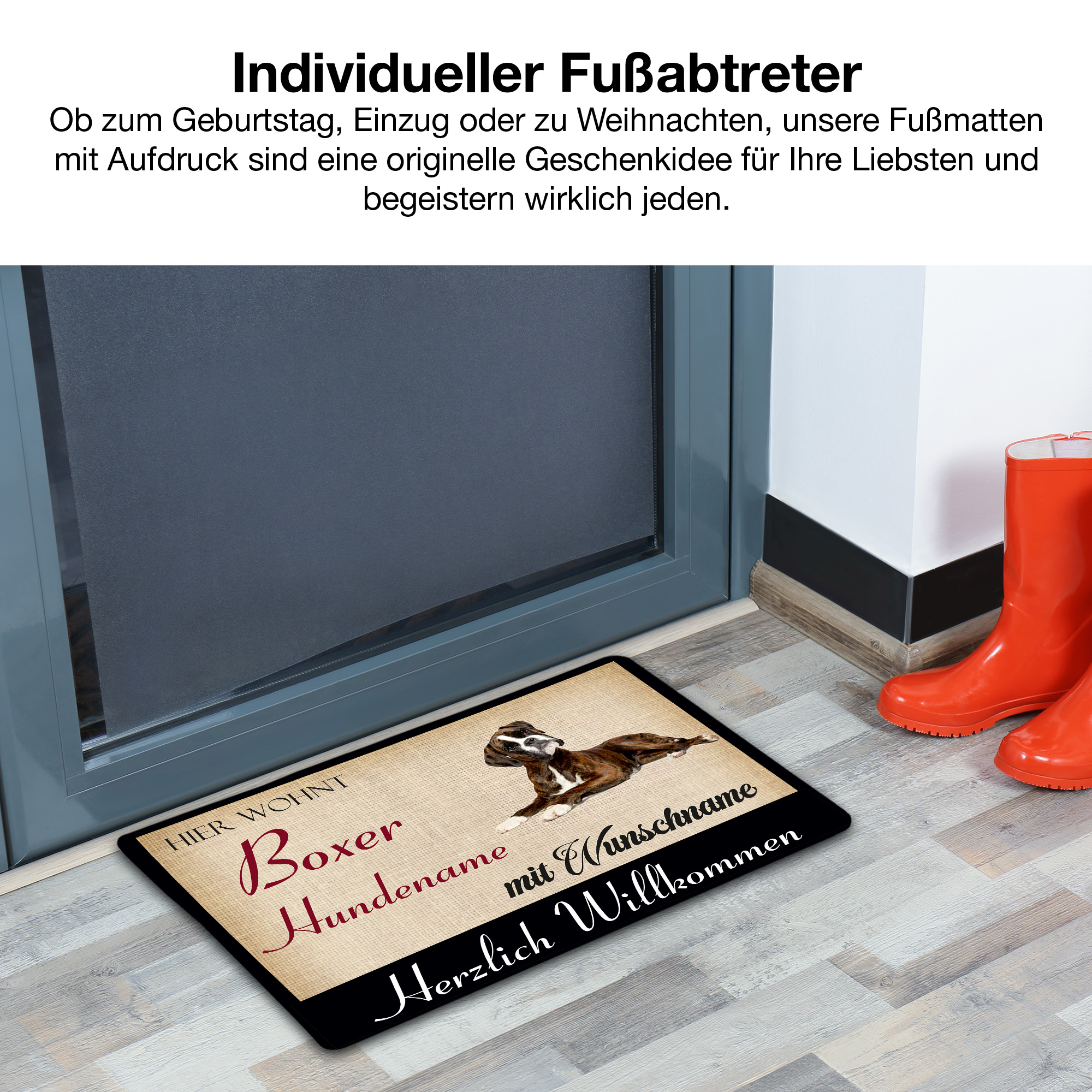 Crealuxe Fussmatte - Hier wohnt BOXER Hundename mit Wunschname - personalisiert, Hundematte, Fußabtreter, Fußabstreifer für die Haustür, Fußmatte rutschfest