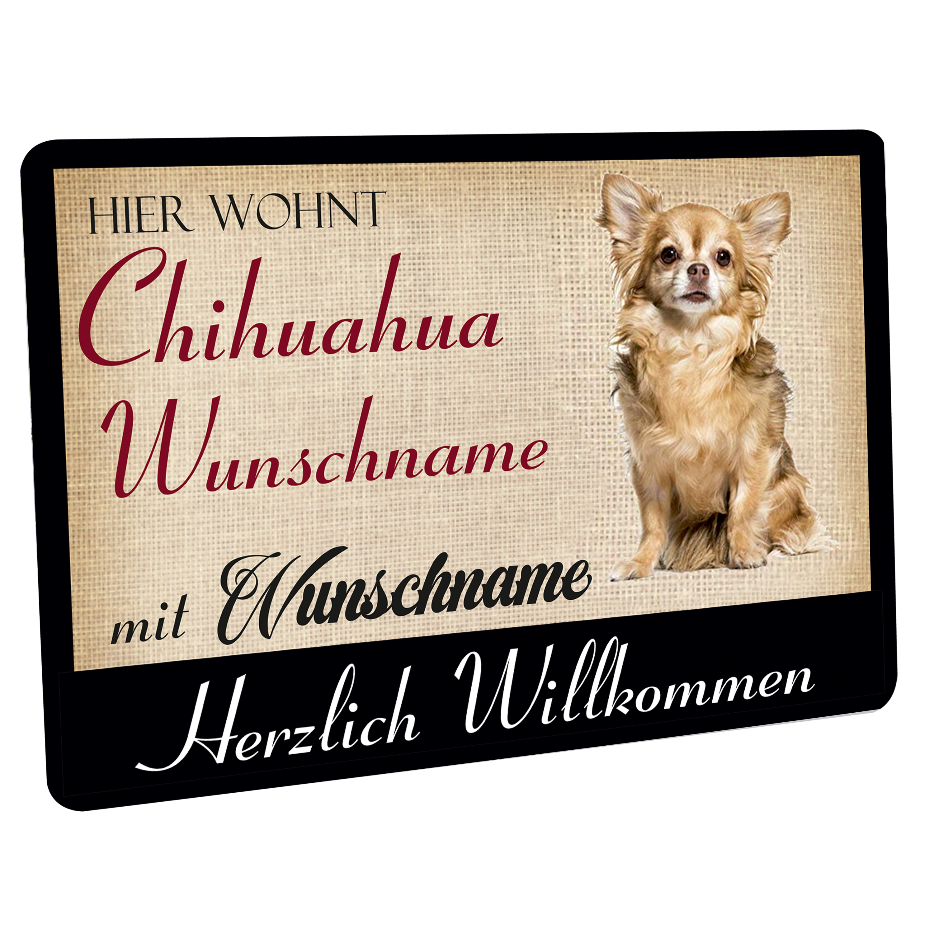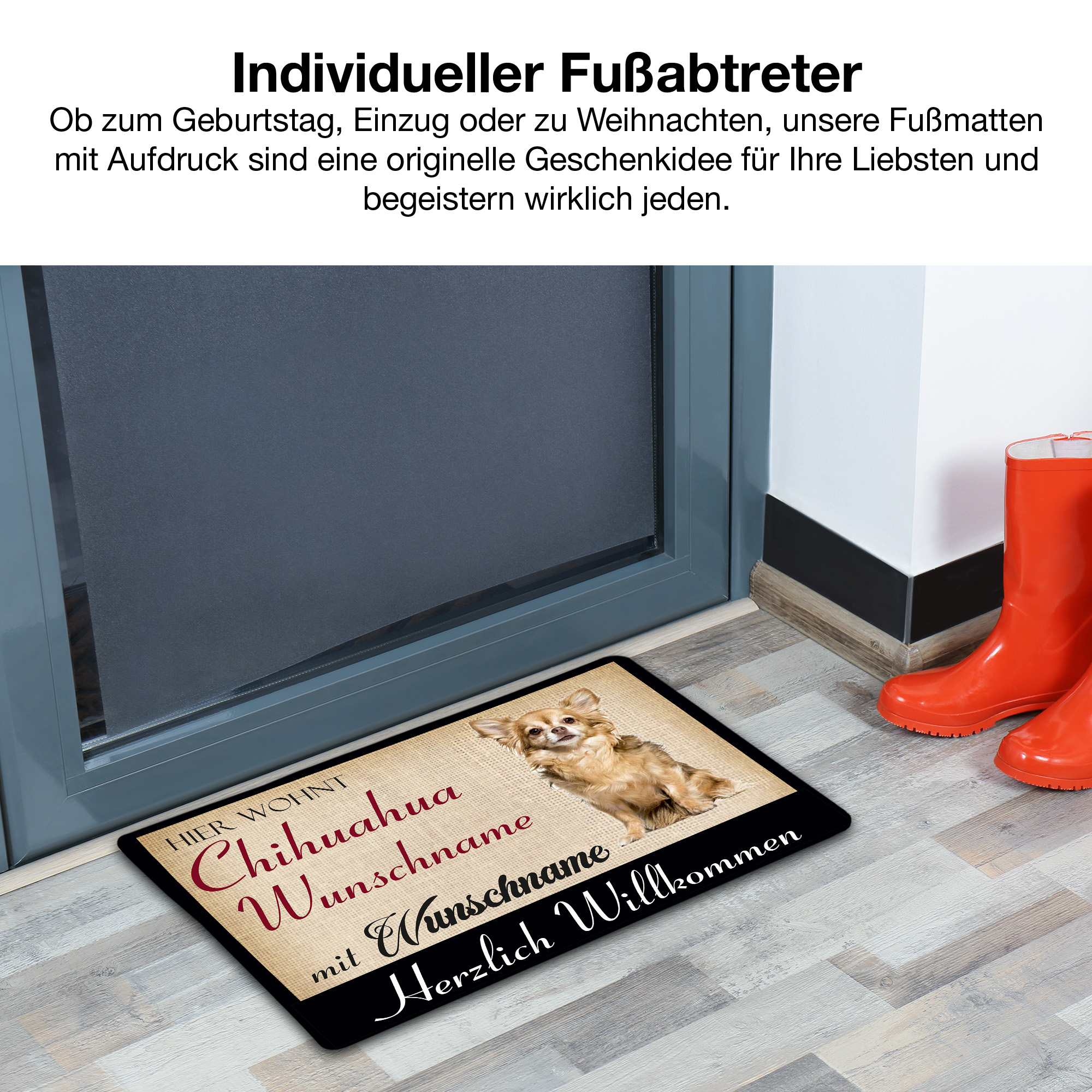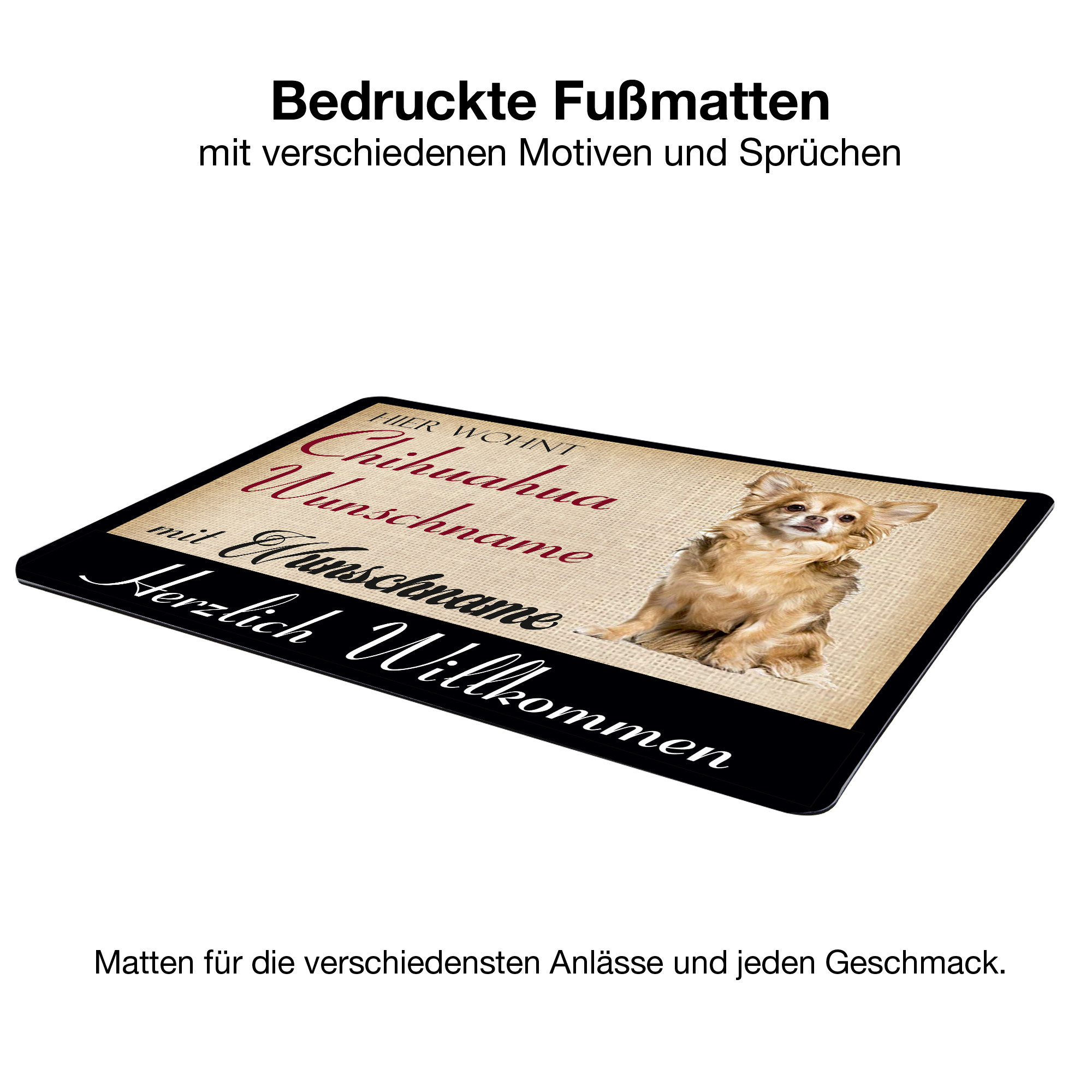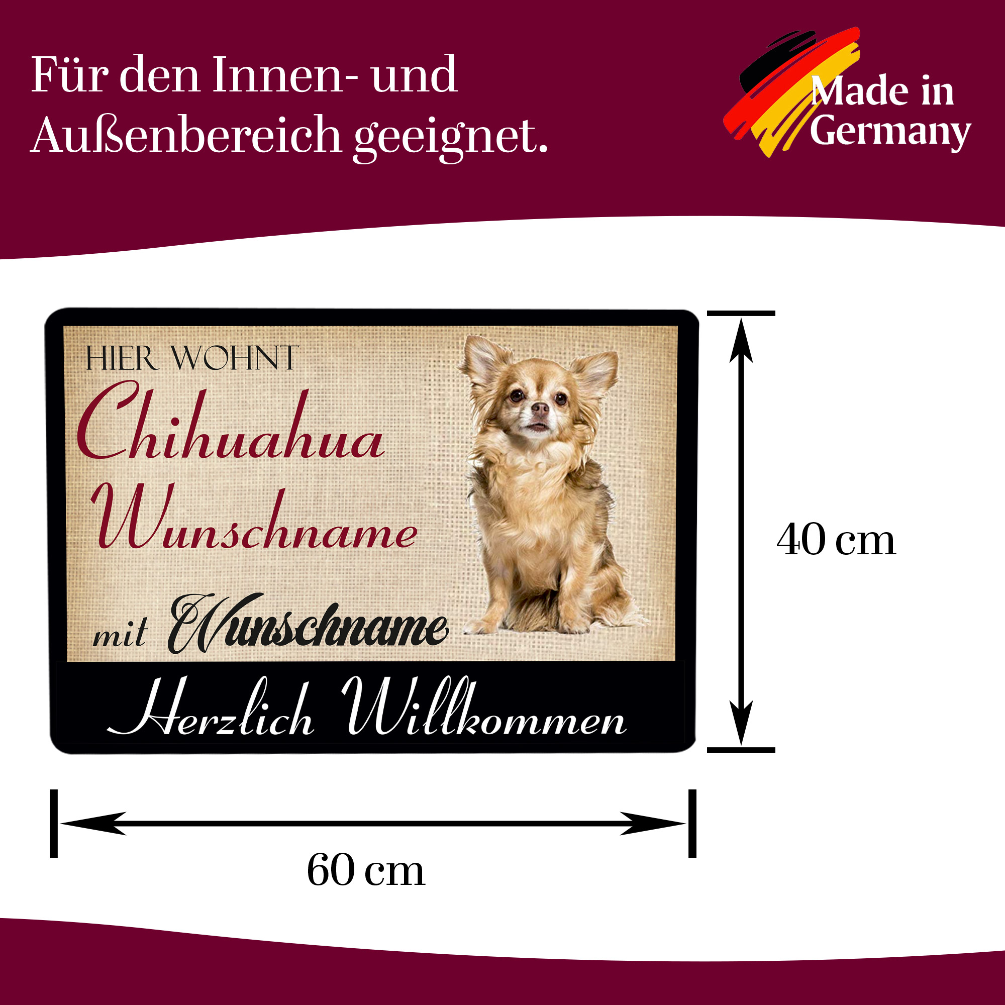 Crealuxe Fussmatte - Hier wohnt CHIHUAHUA Hundename mit Wunschname - personalisiert, Hundematte, Fußabtreter, Fußabstreifer für die Haustür, Fußmatte rutschfest