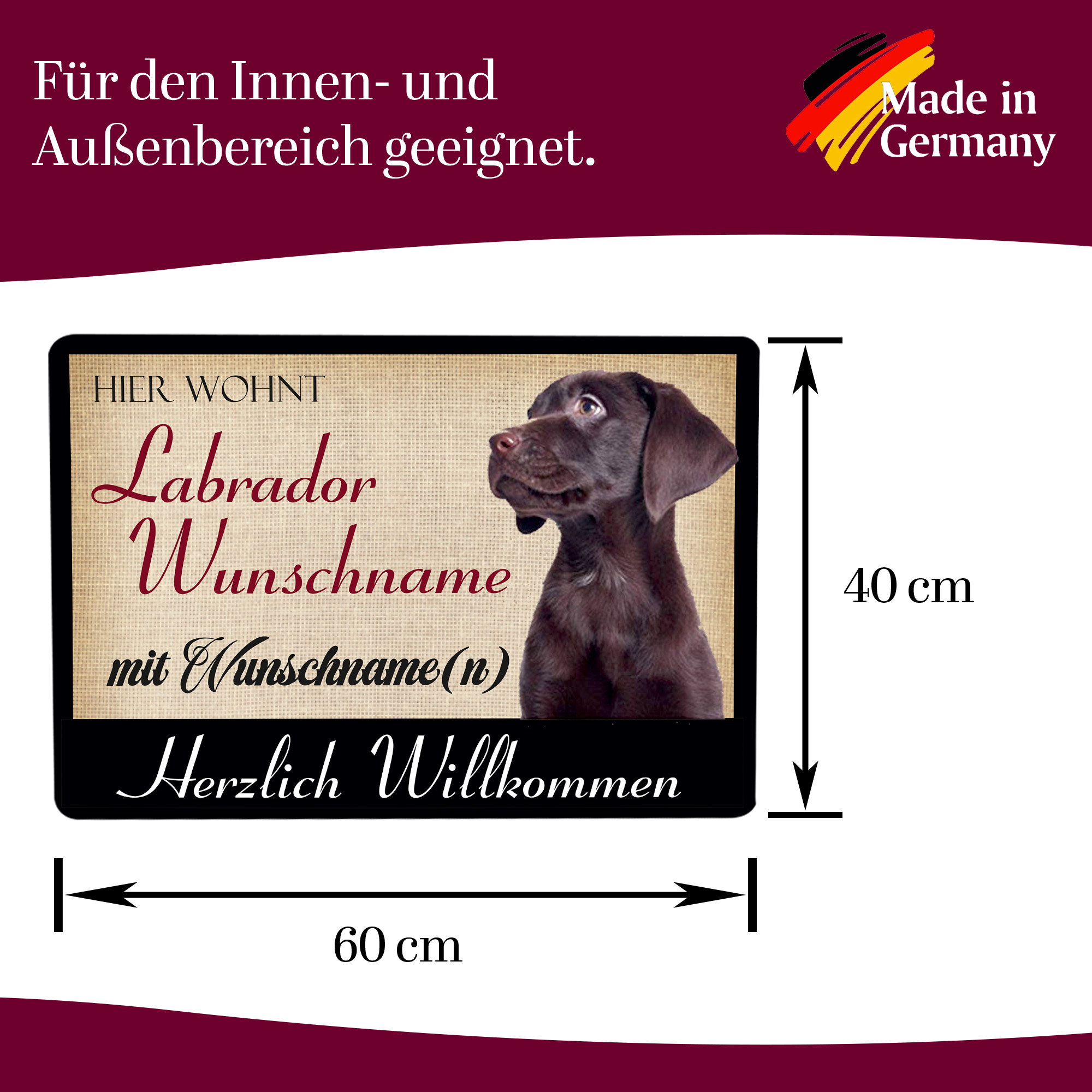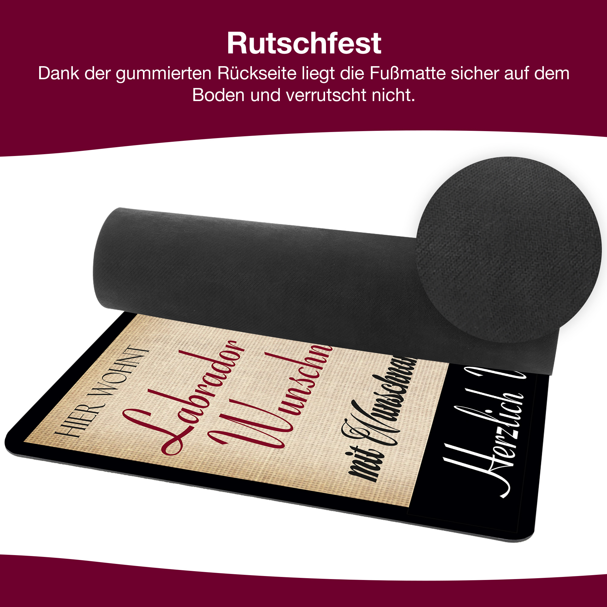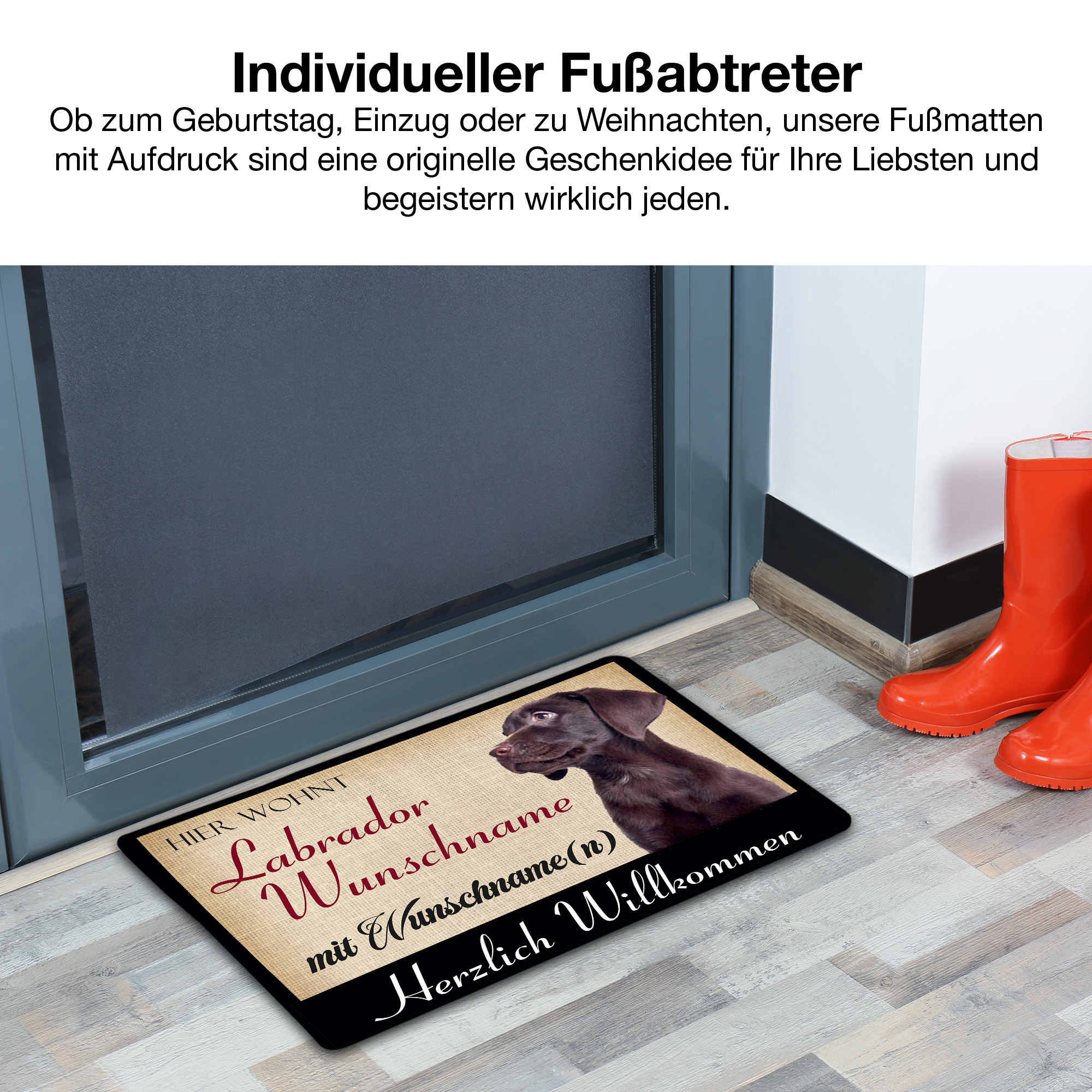 Crealuxe Fussmatte - Hier wohnt LABRADOR Hundename mit Wunschname - personalisiert, Hundematte, Fußabtreter, Fußabstreifer für die Haustür, Fußmatte rutschfest