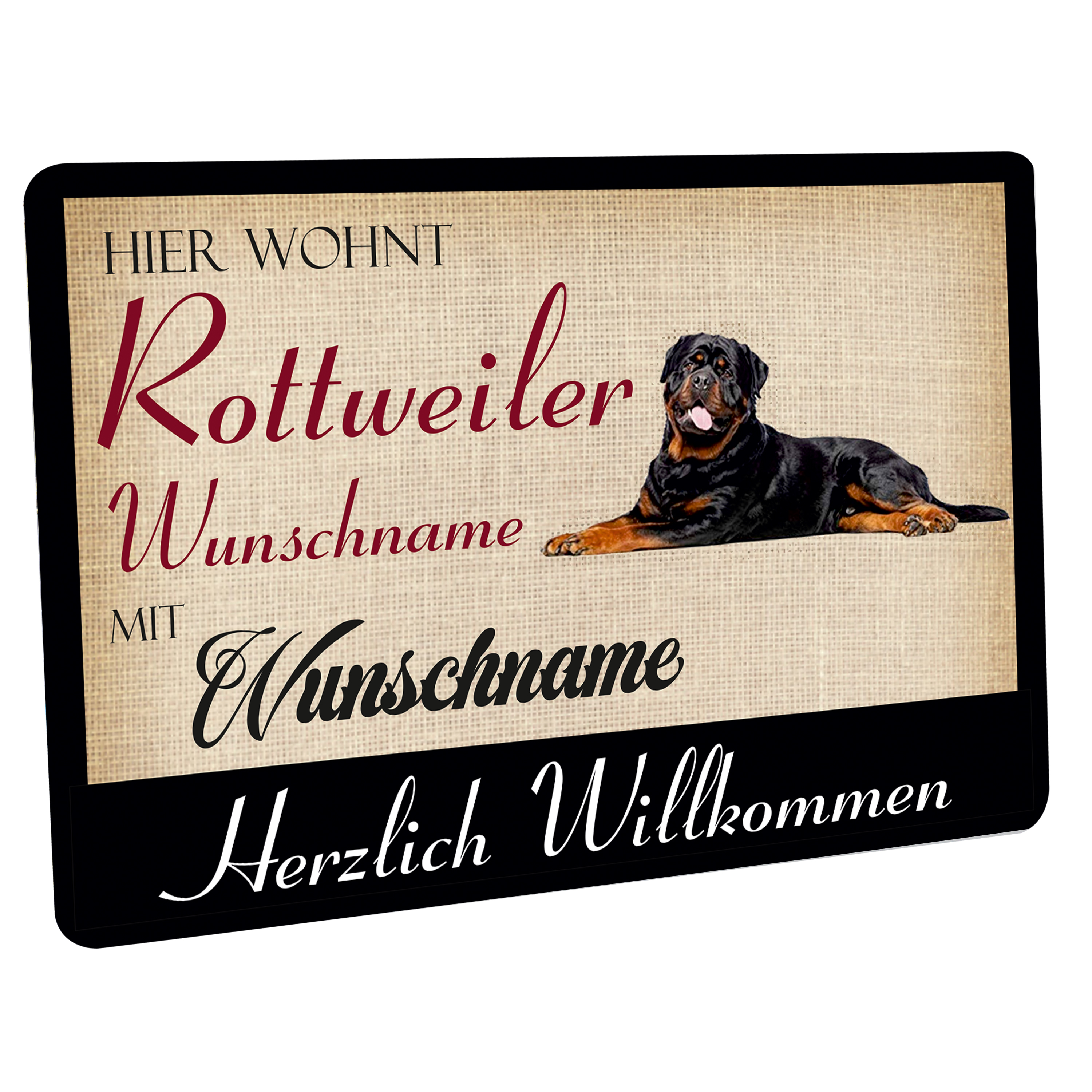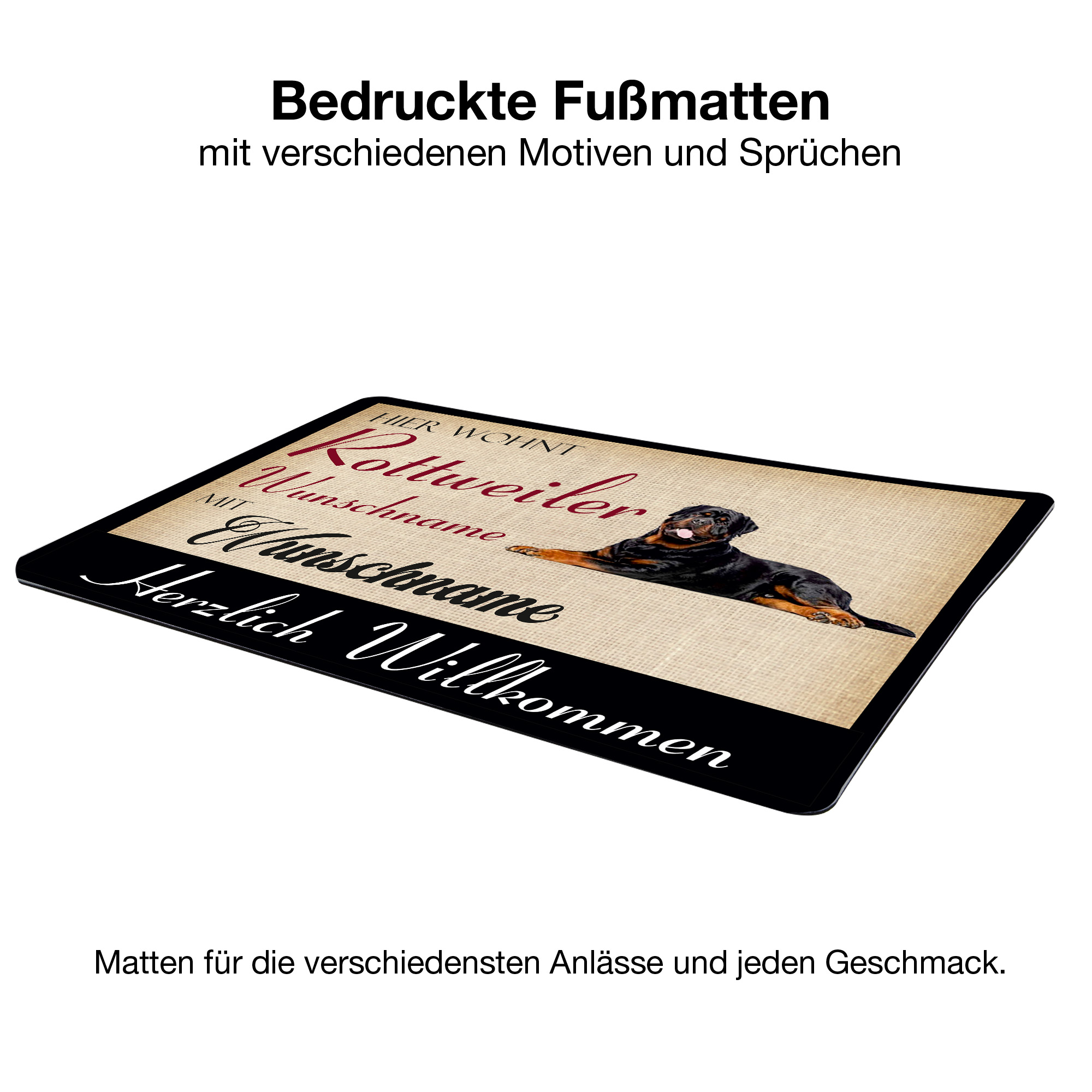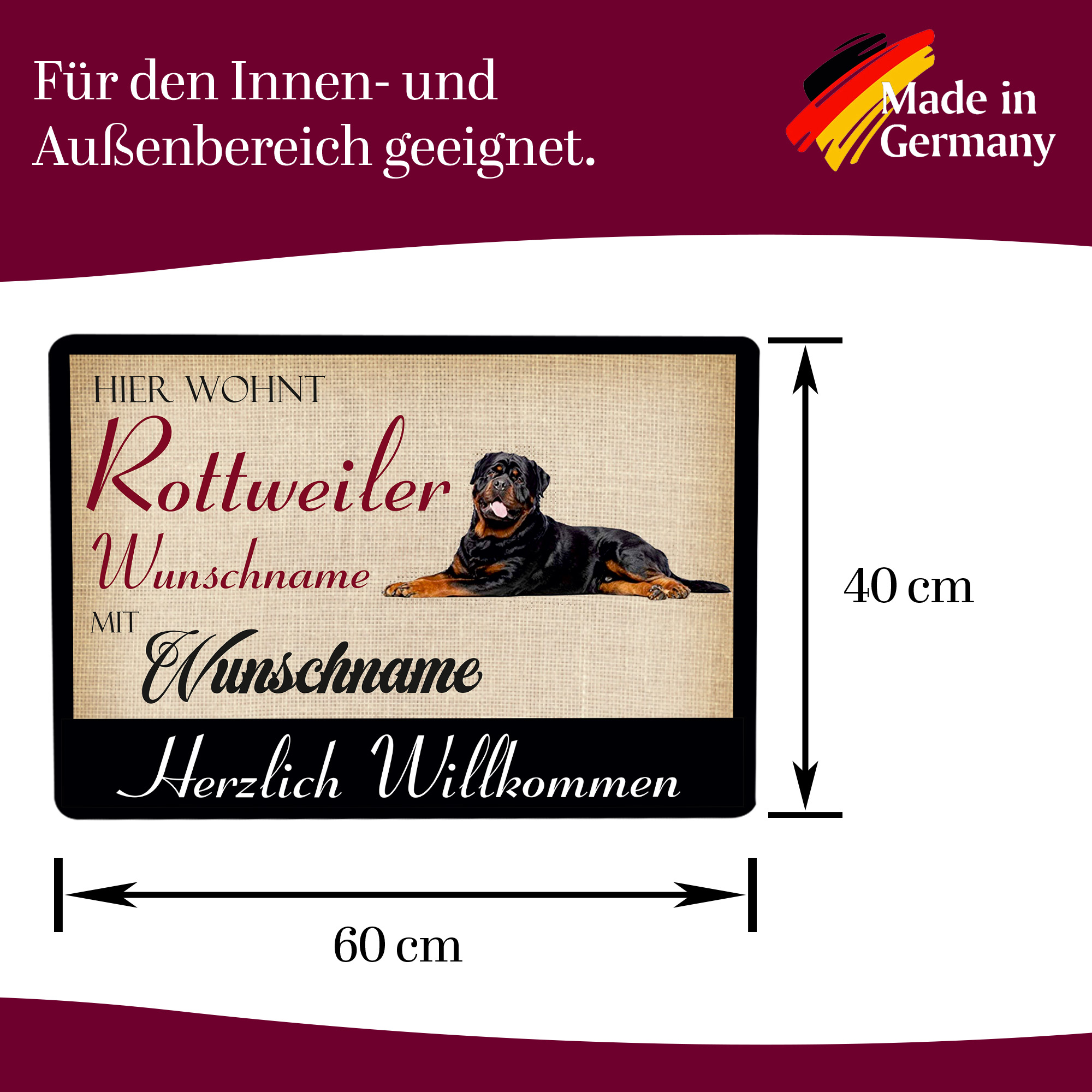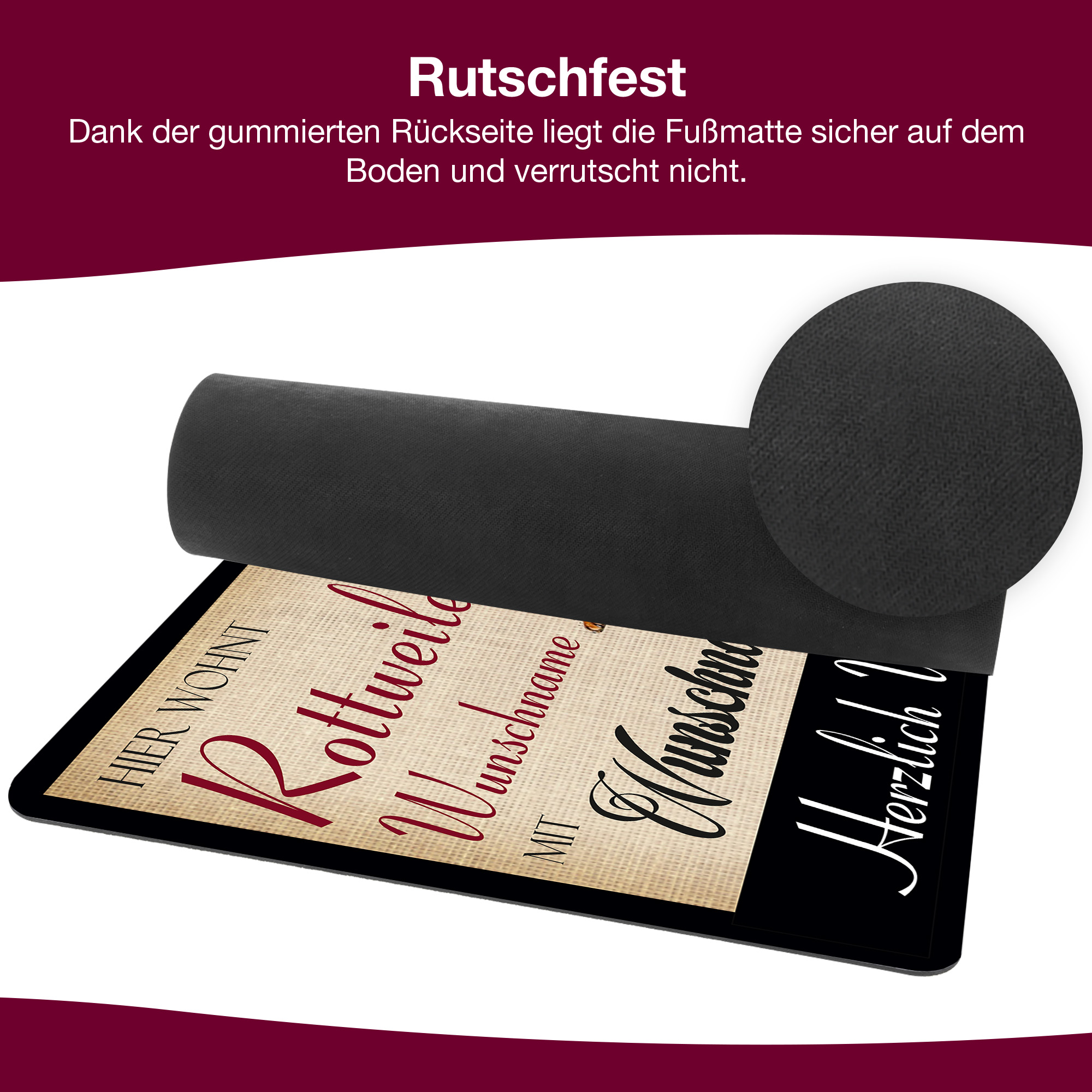 Crealuxe Fussmatte - Hier wohnt ROTTWEILER Hundename mit Wunschname - personalisiert, Hundematte, Fußabtreter, Fußabstreifer für die Haustür, Fußmatte rutschfest