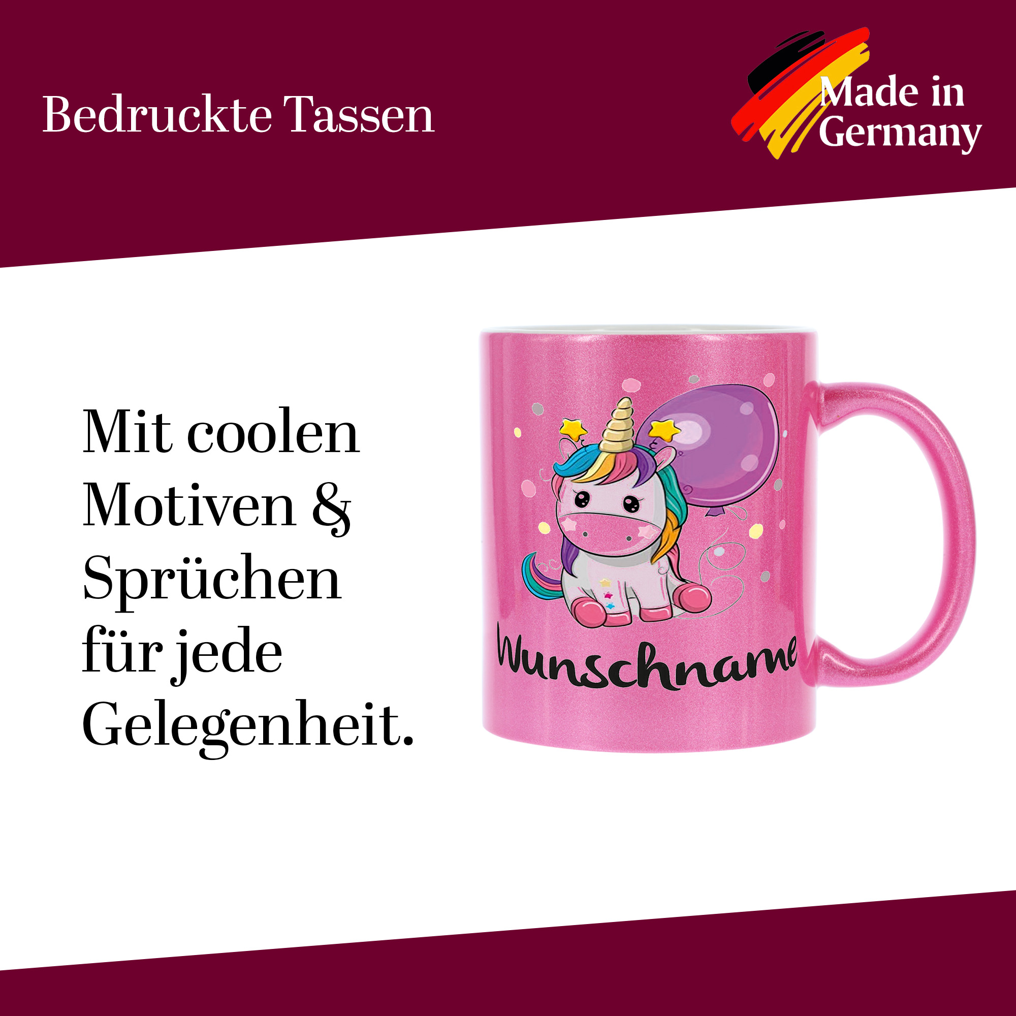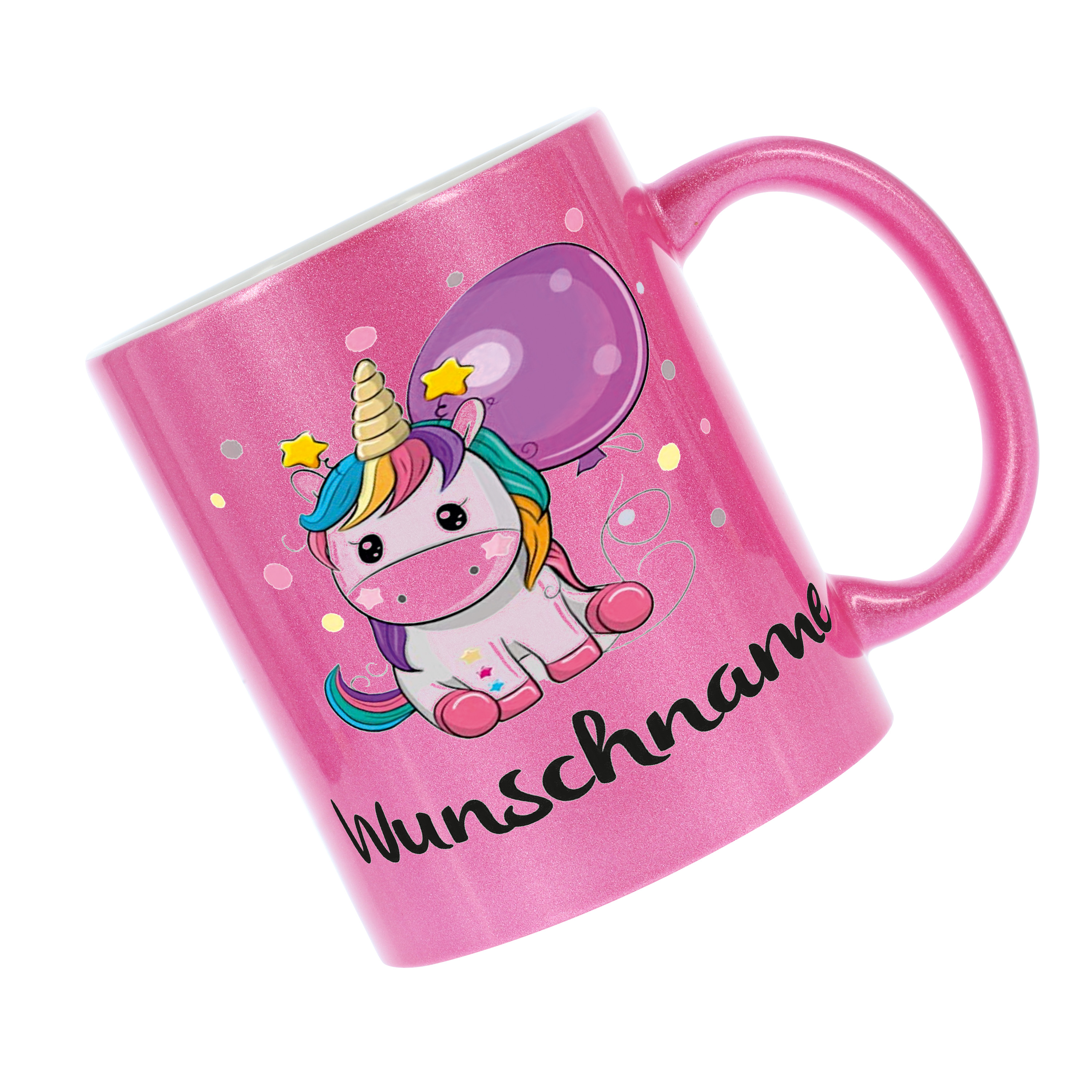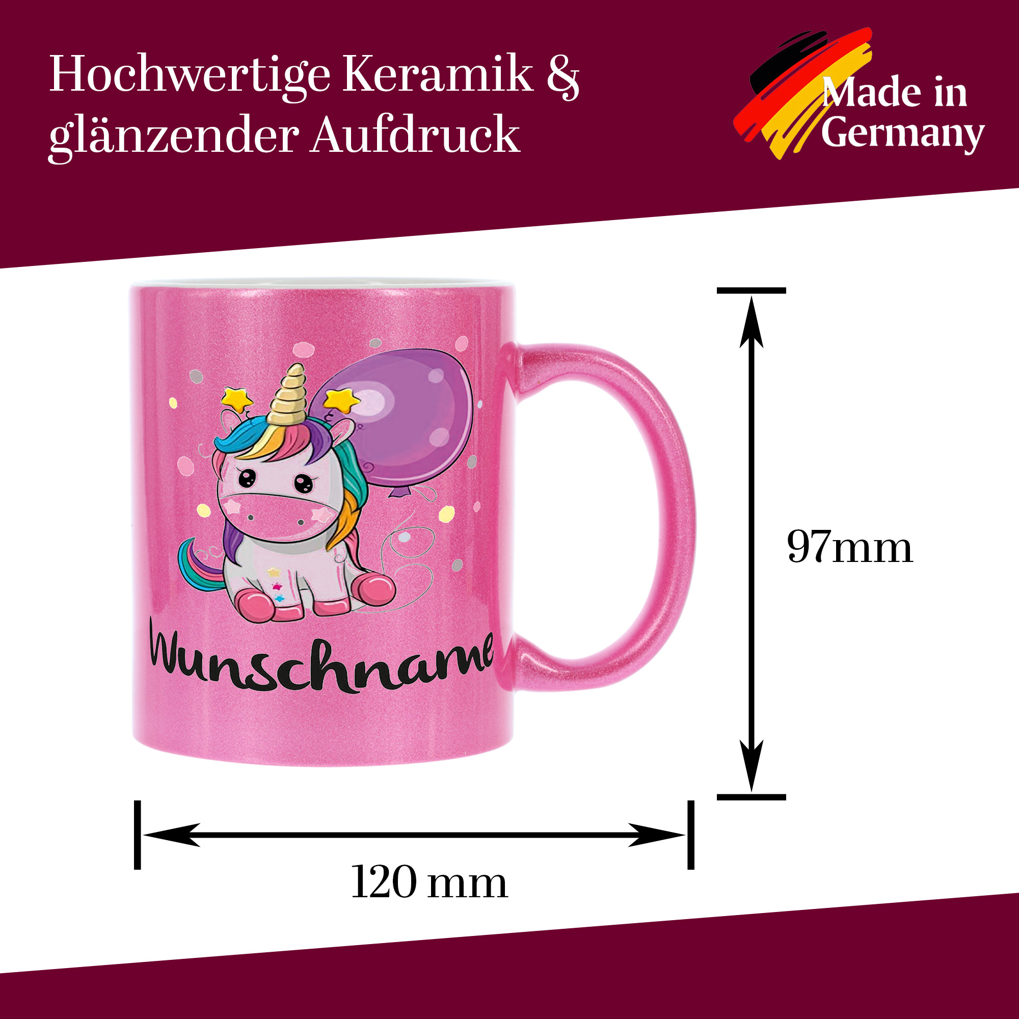 Crealuxe Glitzertasse - Einhorntasse Wunschname - personalisiert, Kaffeetasse, Bürotasse (Perlmutt)