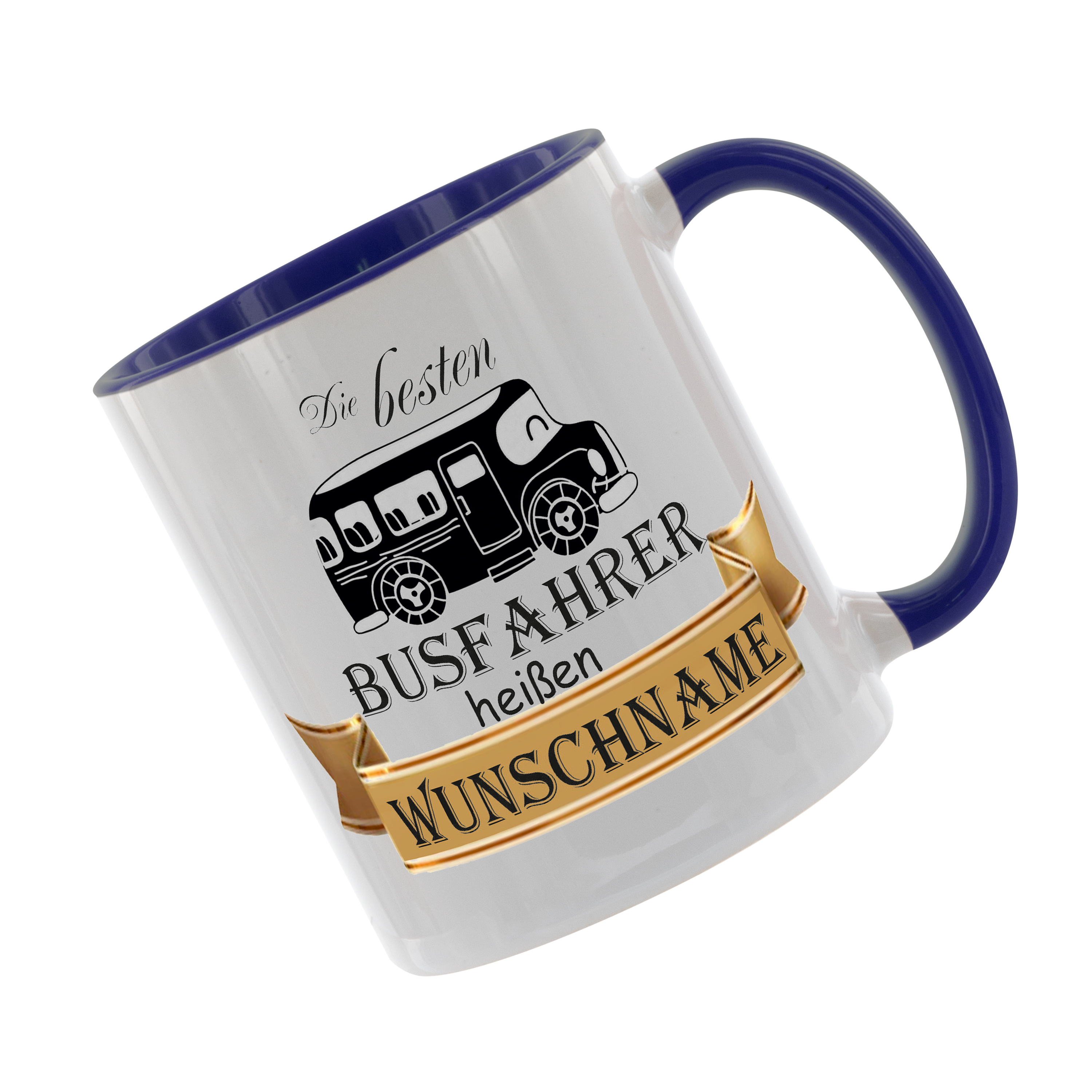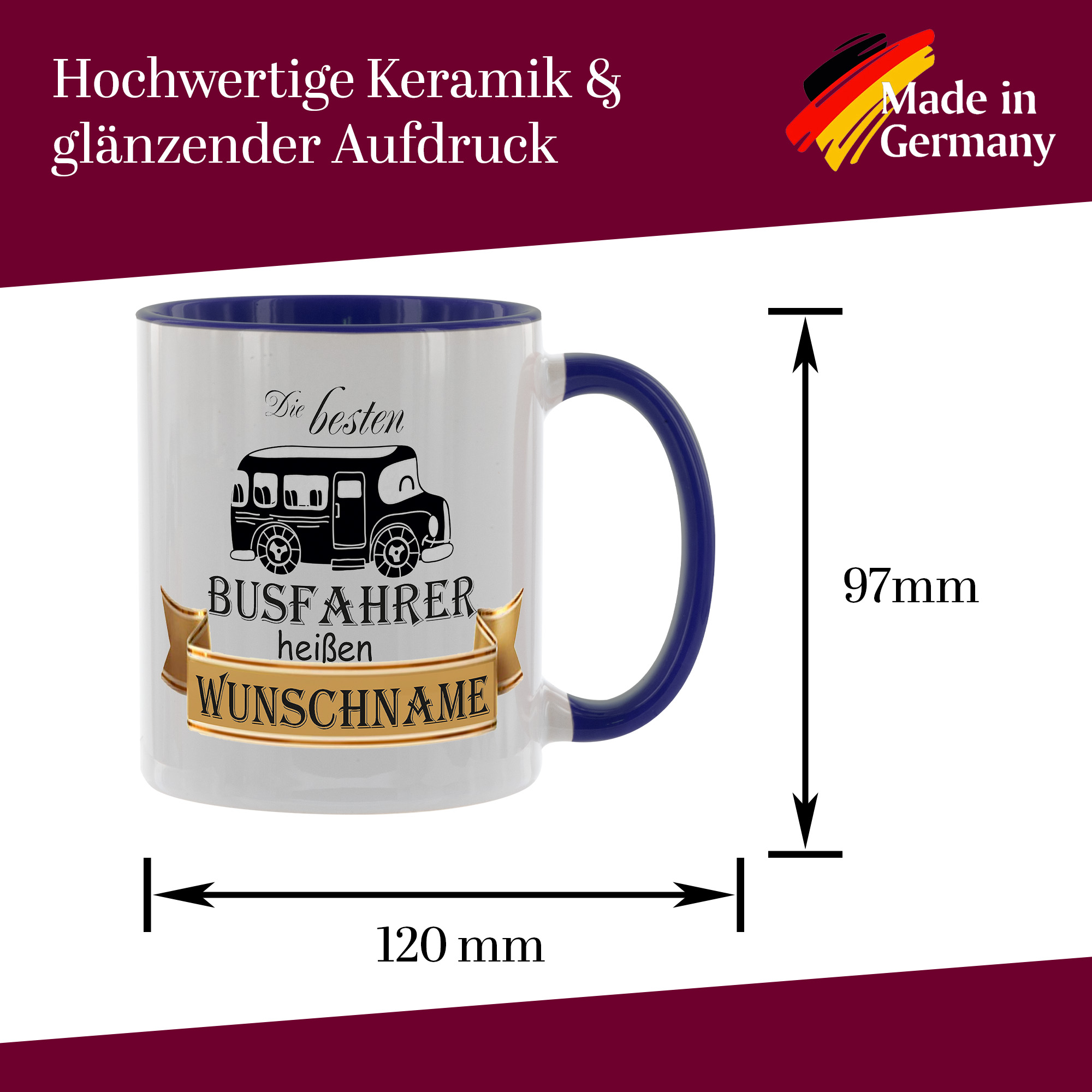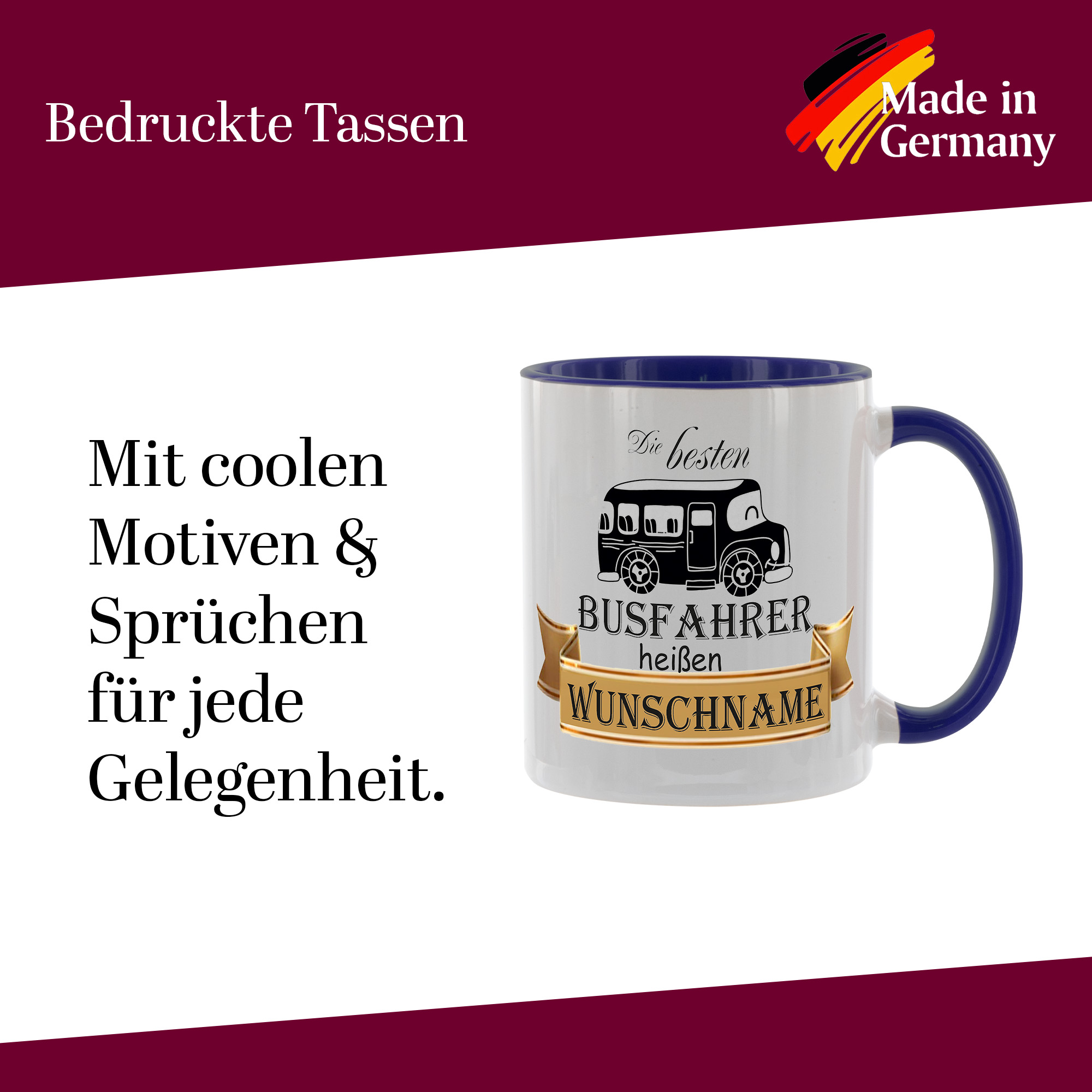 Crealuxe Kaffeetasse - Die besten Busfahrer heißen Wunschname - personalisiert, Spruchtasse, hochwertige Keramiktasse (Blau)