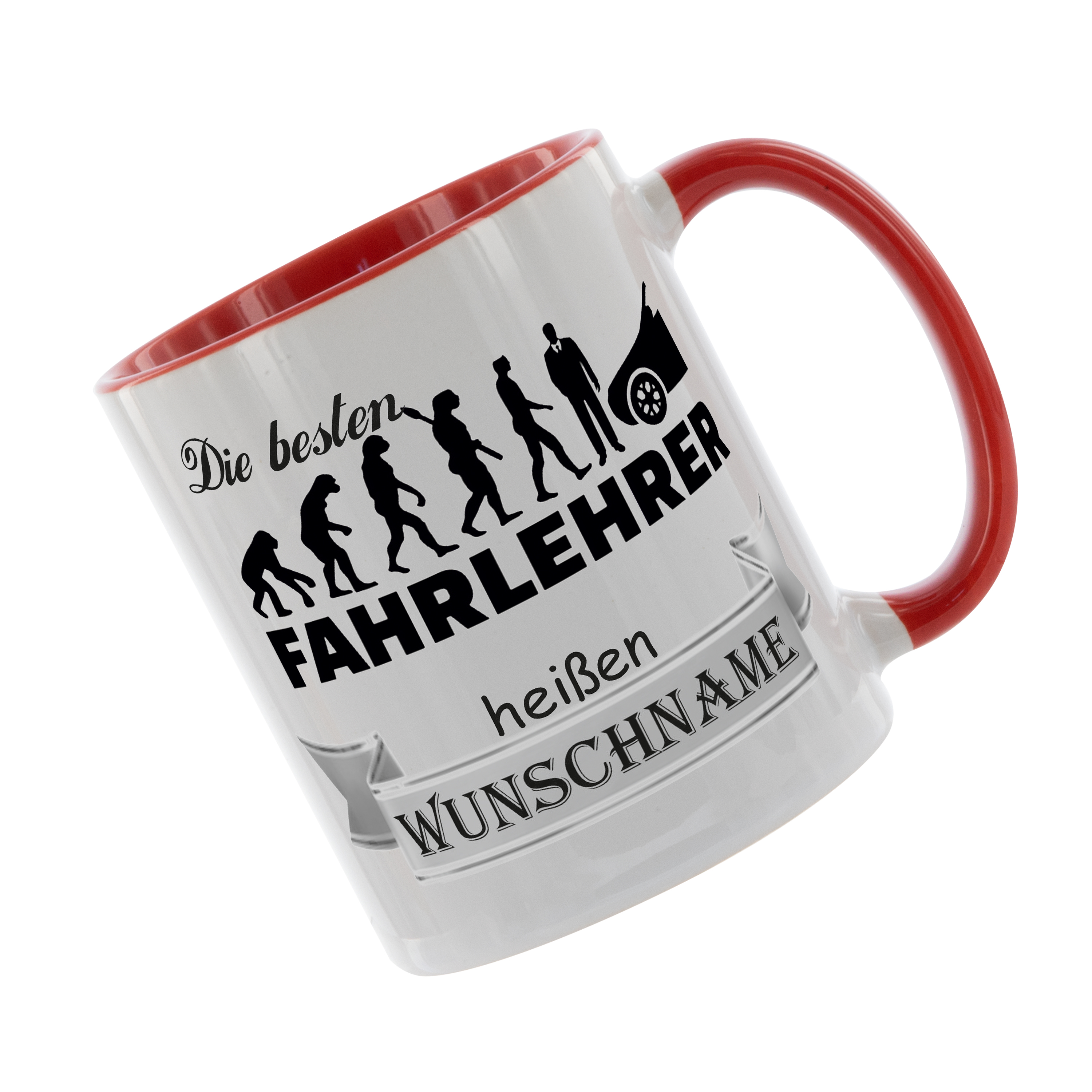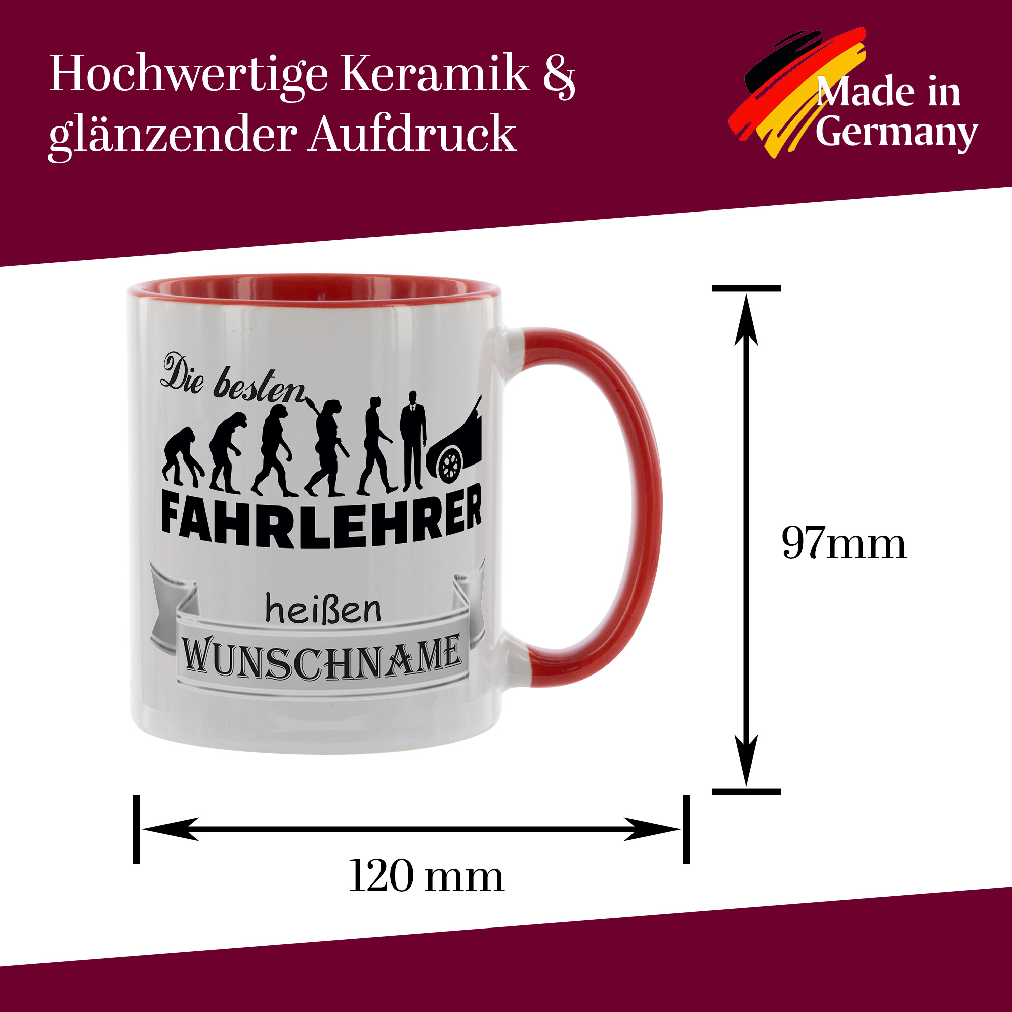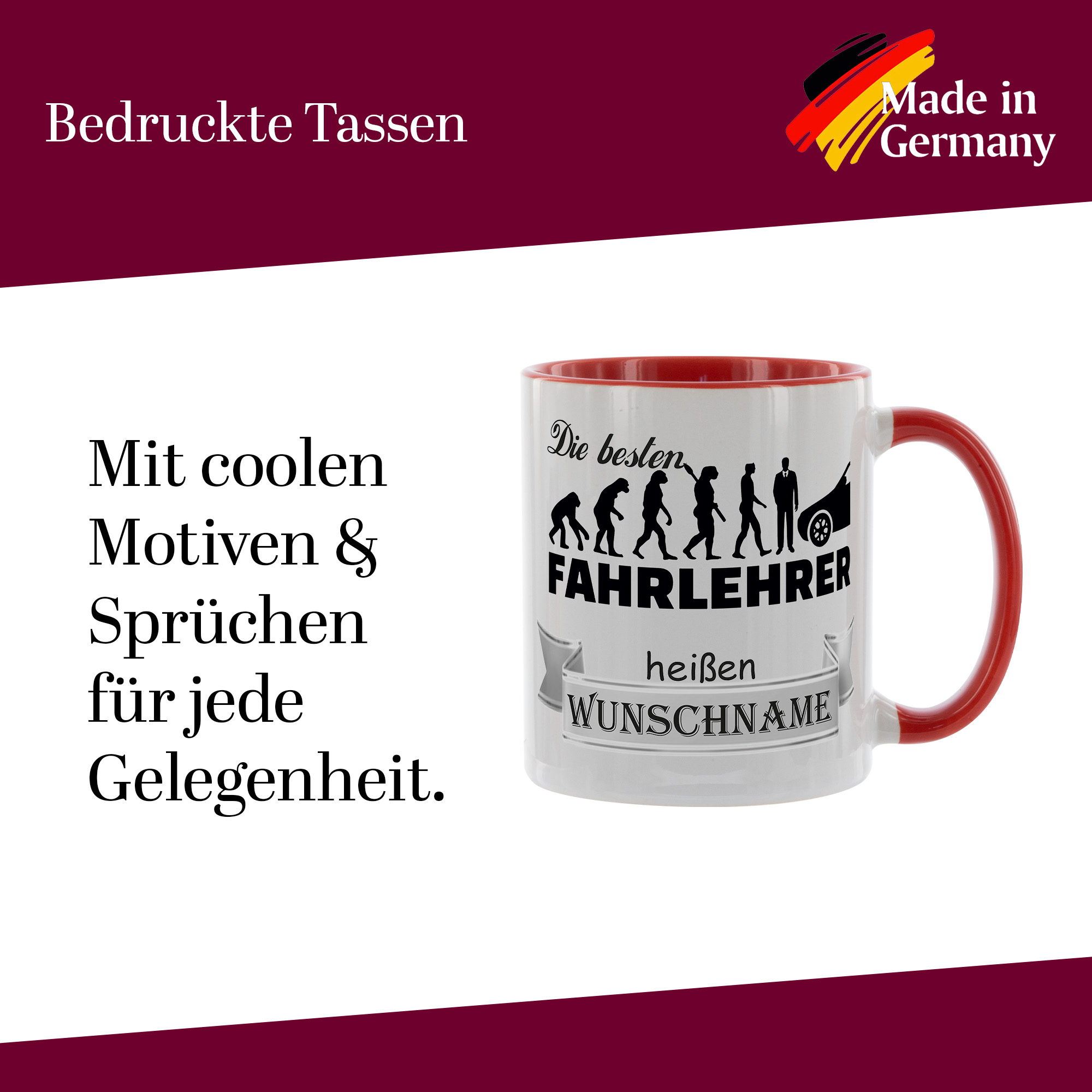 Crealuxe Kaffeetasse - Die besten Fahrlehrer heißen Wunschname - personalisiert, Spruchtasse, hochwertige Keramiktasse (Rot)