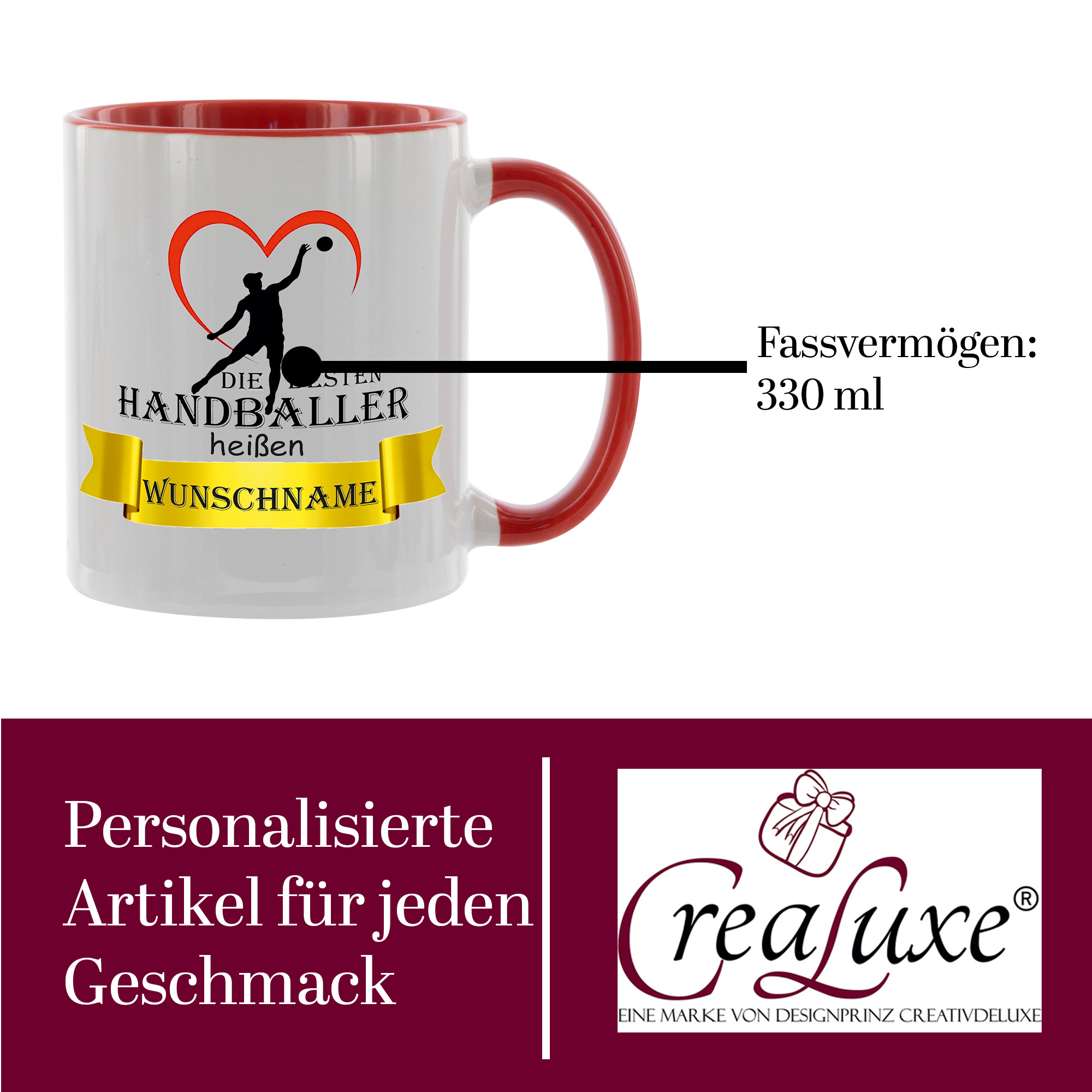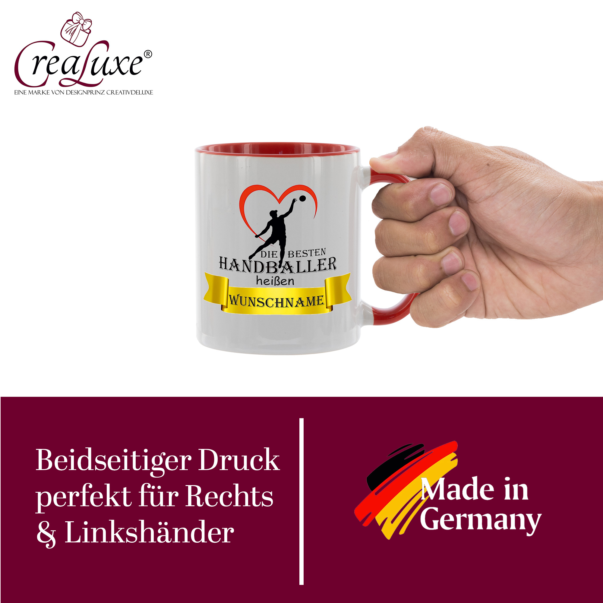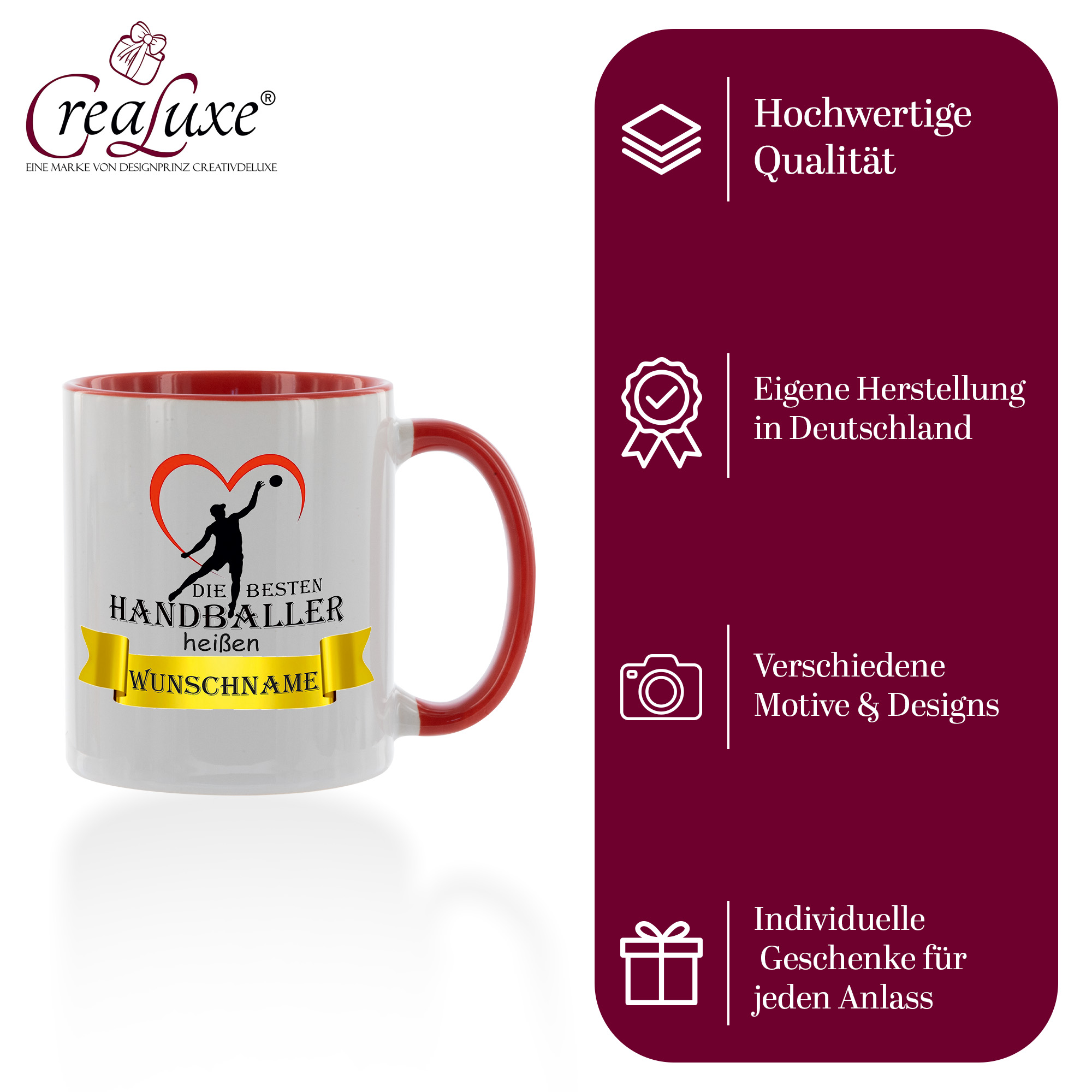 Produktinformationen "Crealuxe Kaffeetasse - Die besten Handballer heißen Wunschname - personalisiert, Spruchtasse, hochwertige Keramiktasse (Rot)"