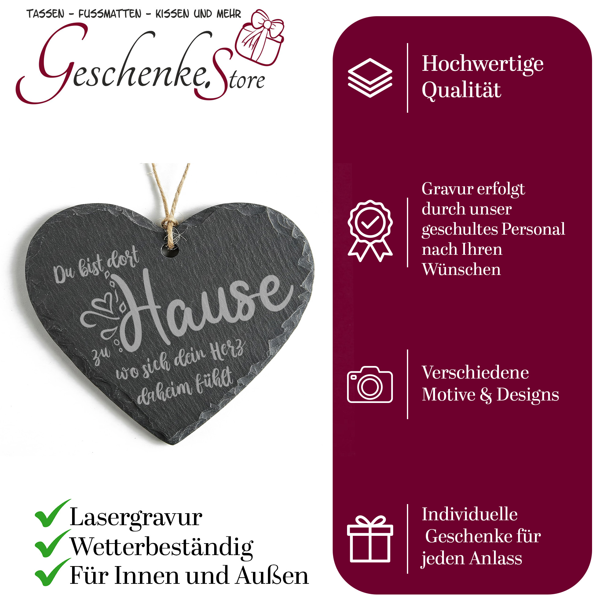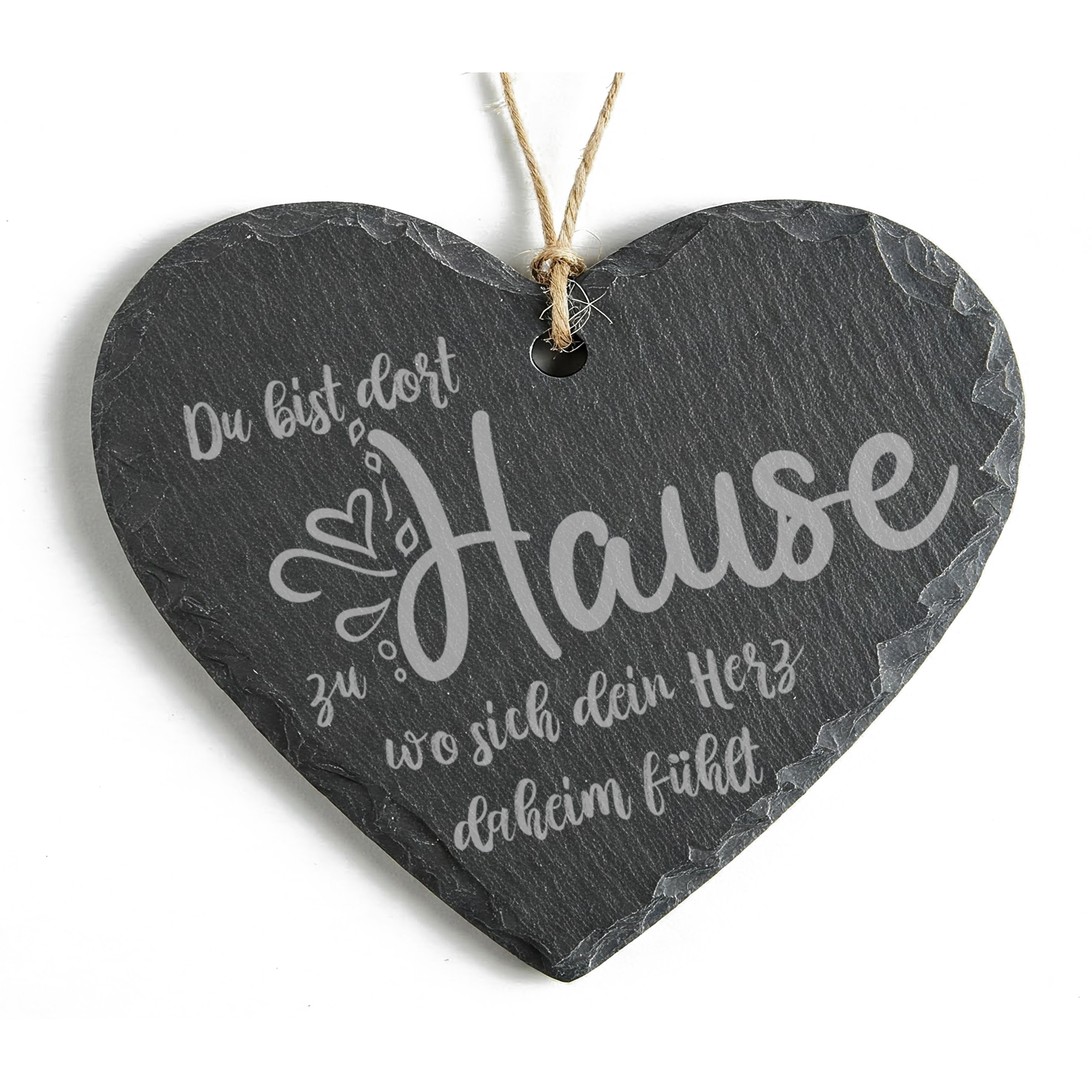 Herz aus Naturschiefer 15x12cm - Du bist dort zu Hause wo sich dein Herz daheim fühlt - Geschenk zum Einzug – Schieferherz mit Gravur
