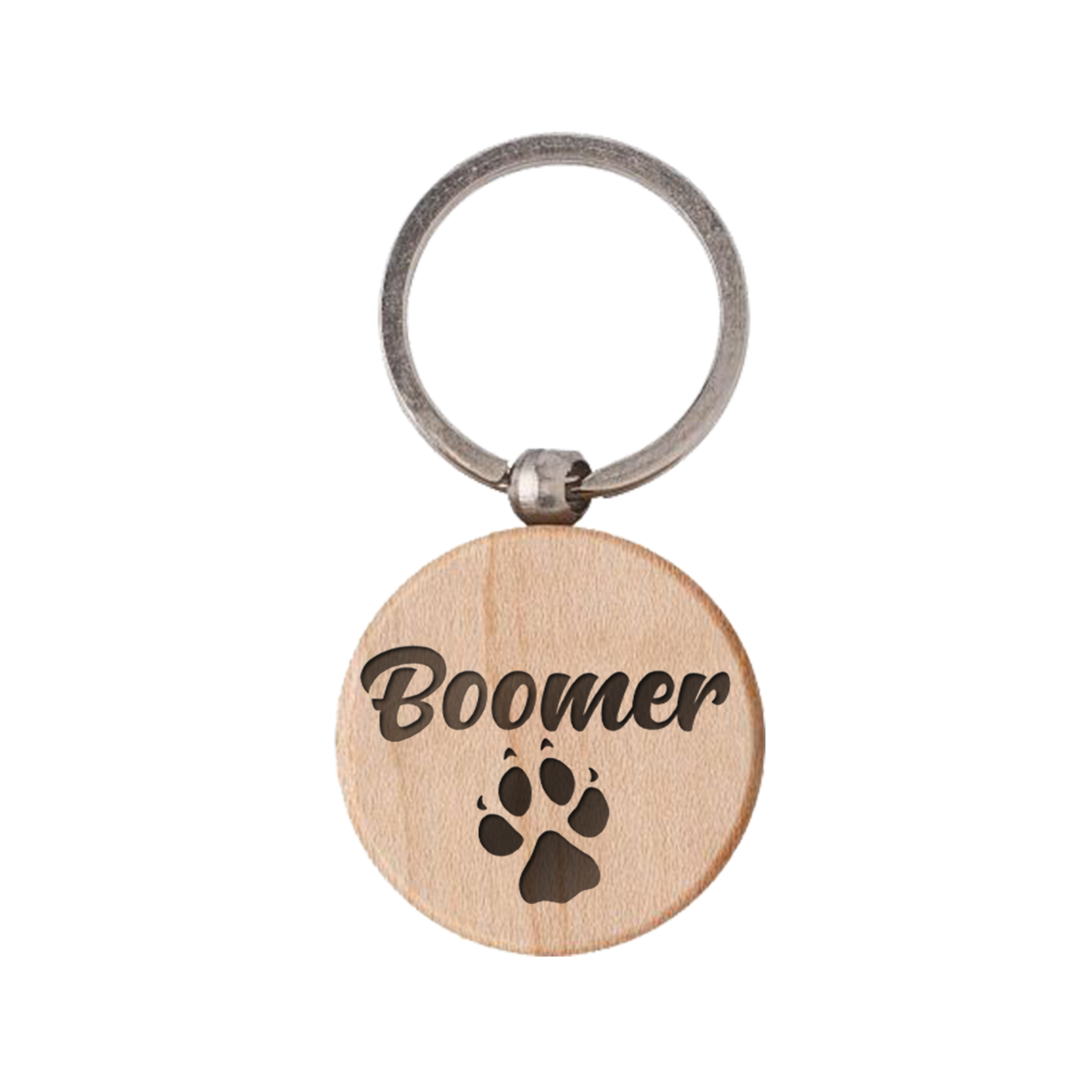 Personalisierter Schlüsselanhänger aus Holz (Rund) - Hund / Katze Pfote mit Wunschname - graviert, Geschenk für Geburtstag, Abschied, Tierliebhaber Holz Anhänger mit einseitigem Wunschtext Wunschgravur