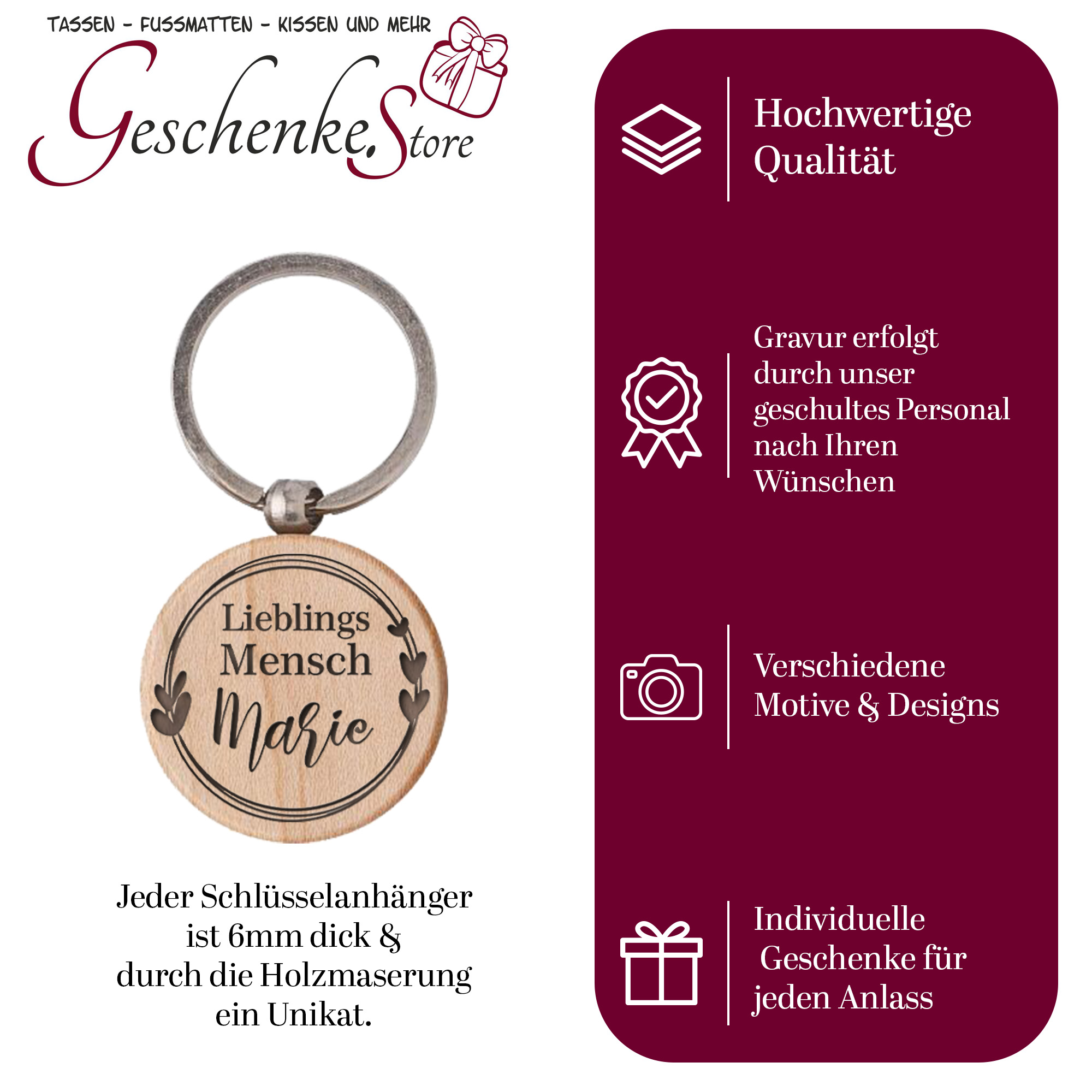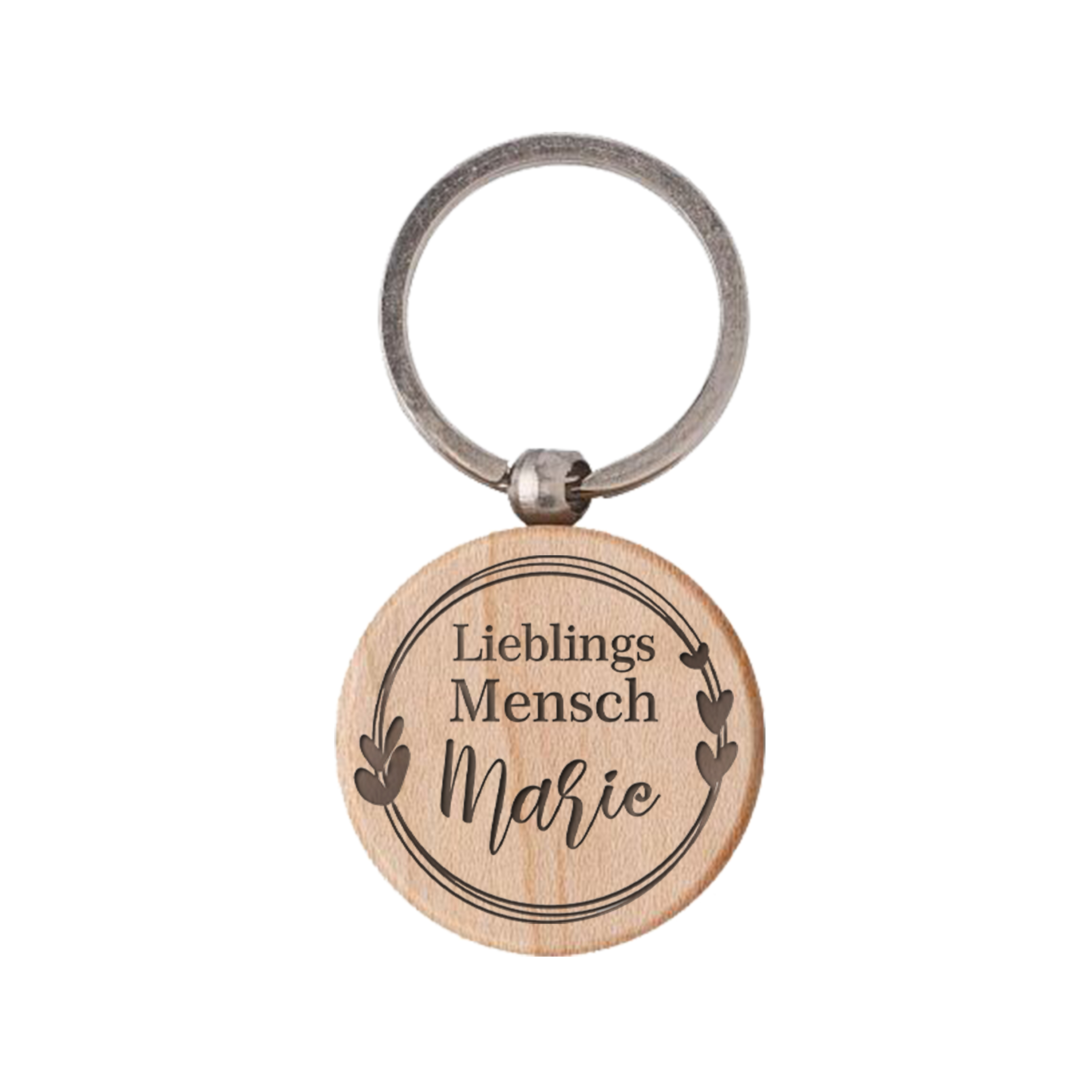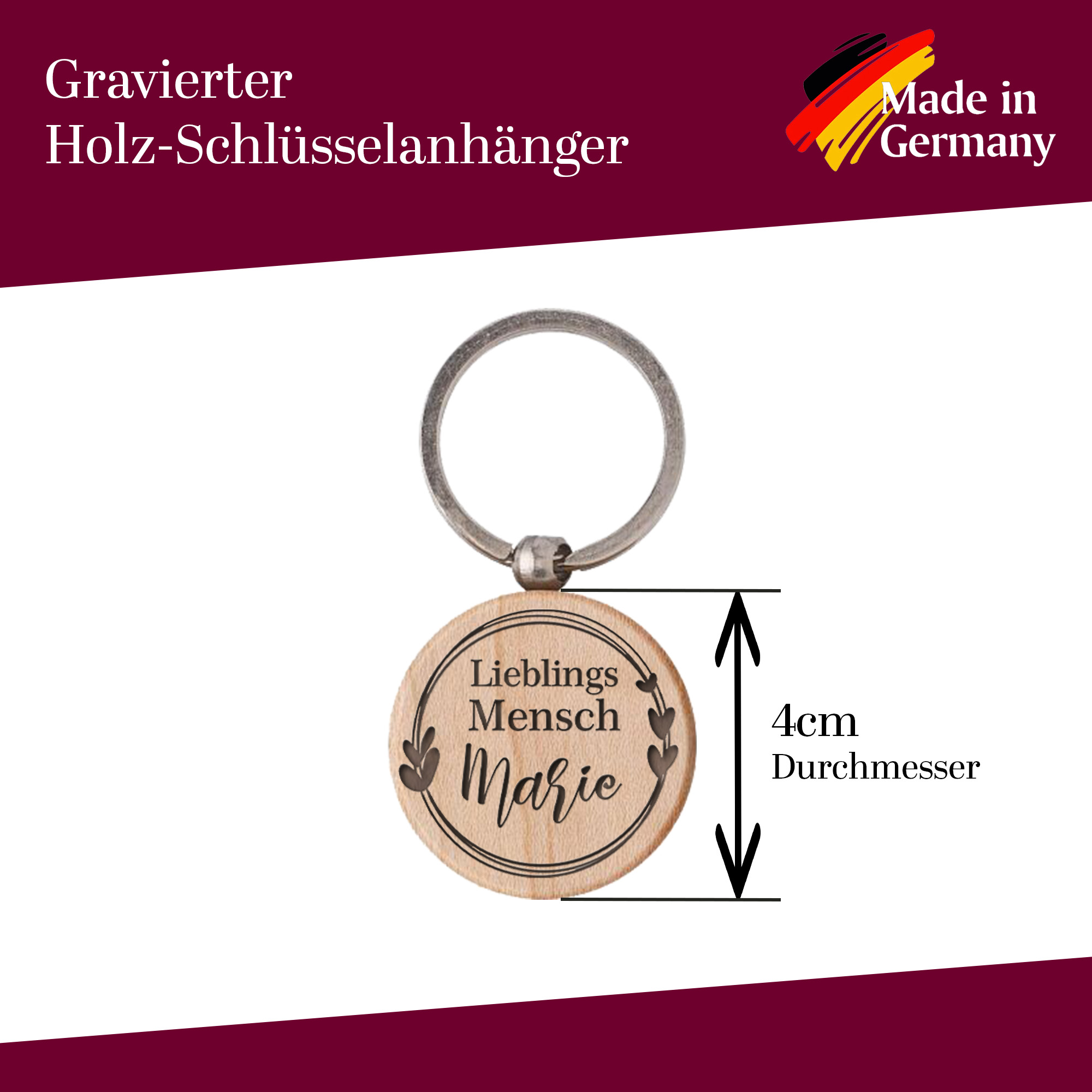 Personalisierter Schlüsselanhänger aus Holz (Rund) - Lieblingsmensch Wunschname - graviert, Geschenk für Geburtstag, Abschied Holz Anhänger mit einseitigem Wunschtext Wunschgravur