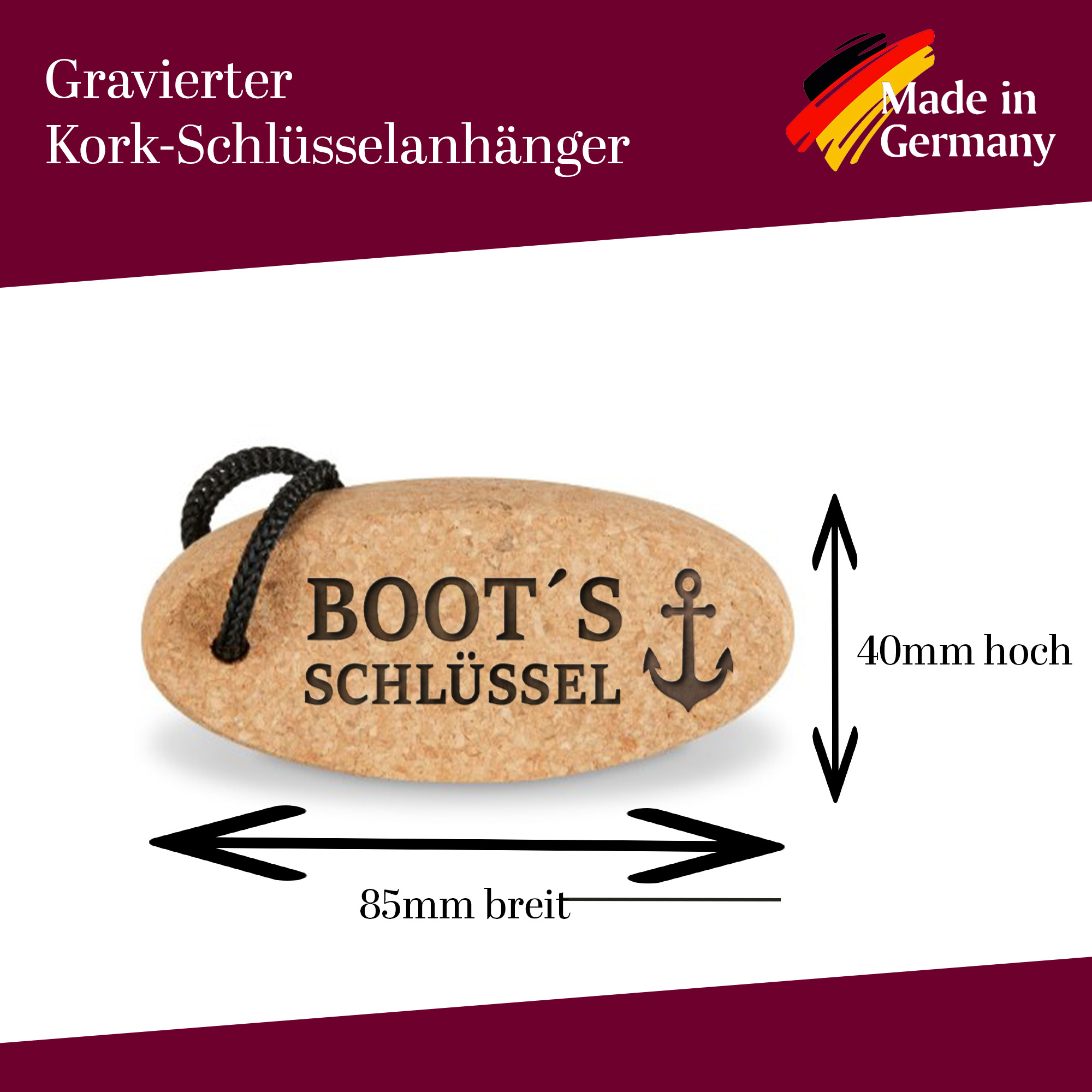 Produktinformationen "Personalisierter Schlüsselanhänger aus Kork (Oval) - Boot's Schlüssel, graviert, Geschenk für Kapitäne, Bootzubehör, Geburtstag, Abschied Holz Anhänger mit einseitigem Wunschtext Wunschgravur"